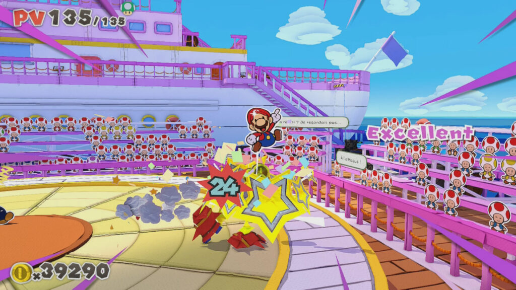 Premier constat, ce nouveau Paper Mario n’est plus vraiment un RPG : plus de barre d’expérience, plus d’arbres de talent…