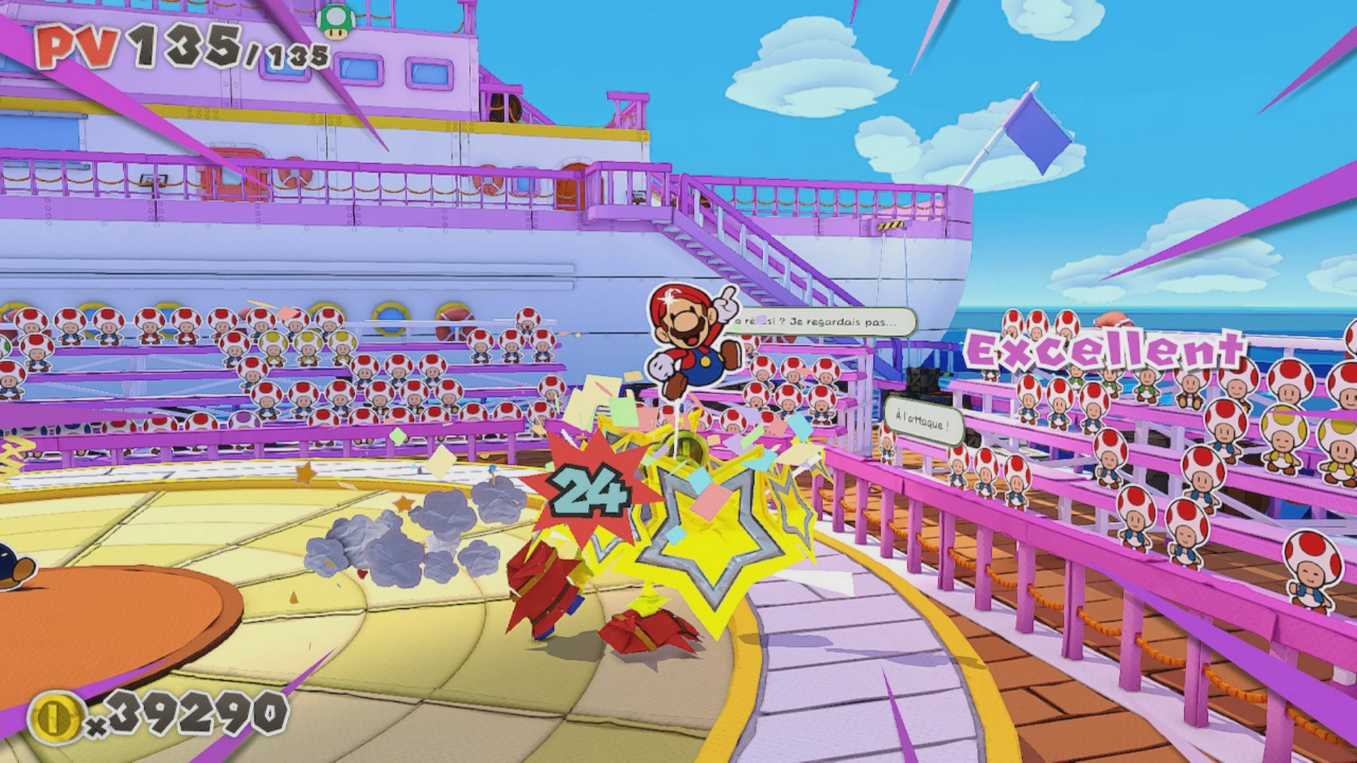 Chaque Paper Mario propose son propre système de combat original, mais il faut avouer que celui d’Origami King déroute un brin, bien qu’intéressant.