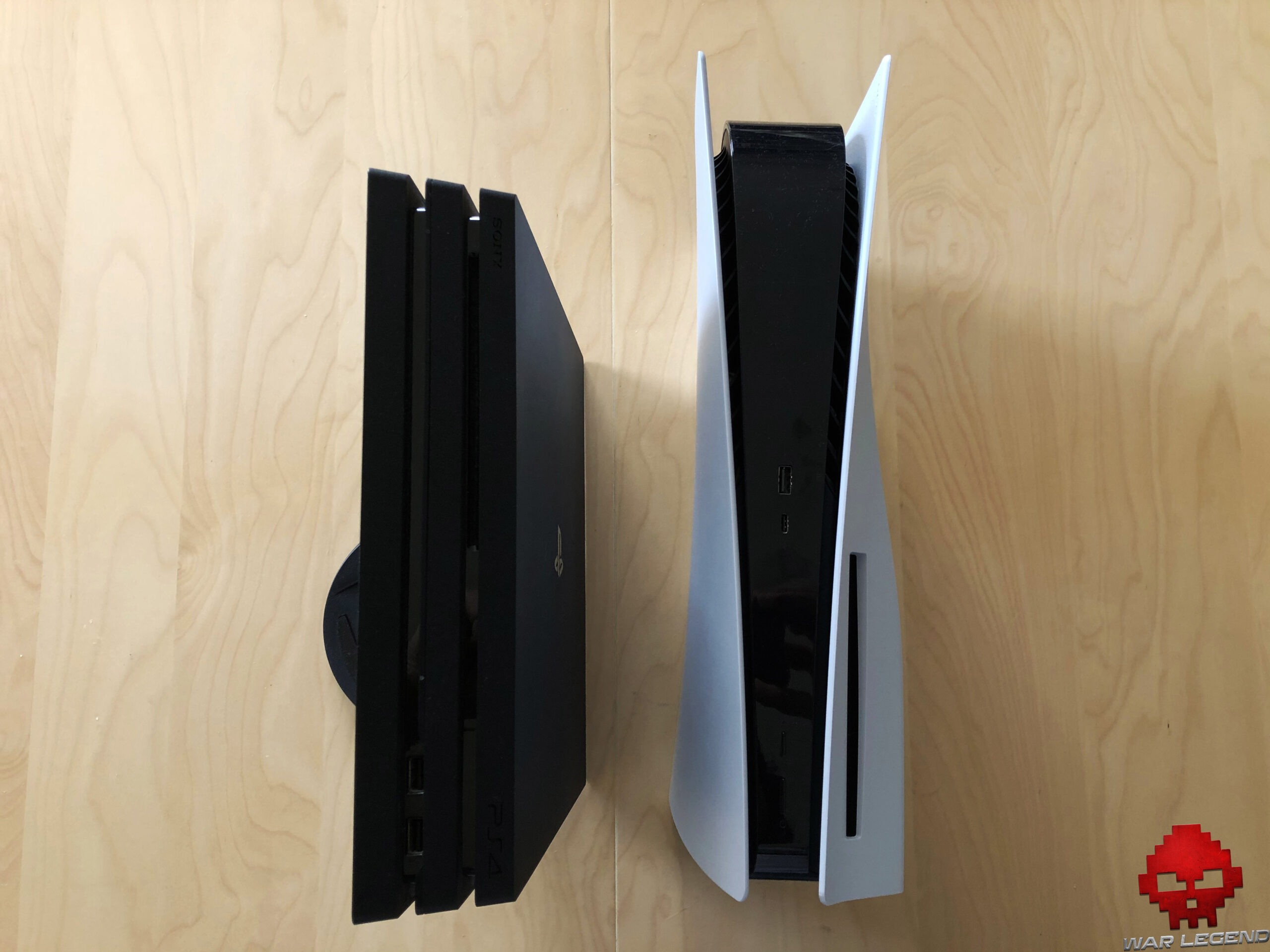 Premier constat : Sony n’a toujours pas viré du côté du bloc d’alimentation, ce qu’on ne peux que saluer. Cela évite en effet de prendre de la place supplémentaire du côté du meuble TV, et de la place il va vous en falloir pour caser le monstre. La PS5 Standard Edition mesure pas moins de 39 x 10.4 x 26 cm et pèse la bagatelle de 4.5 kg. C’est beaucoup plus que la PS4, mais ce n’est pas pour rien, nous y reviendrons.
