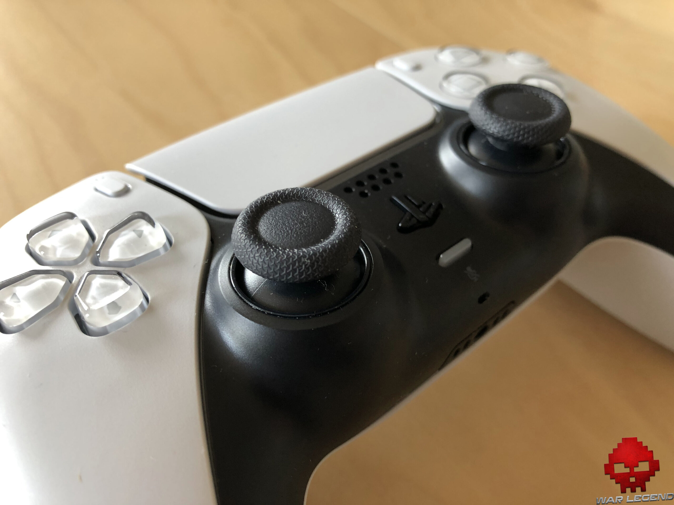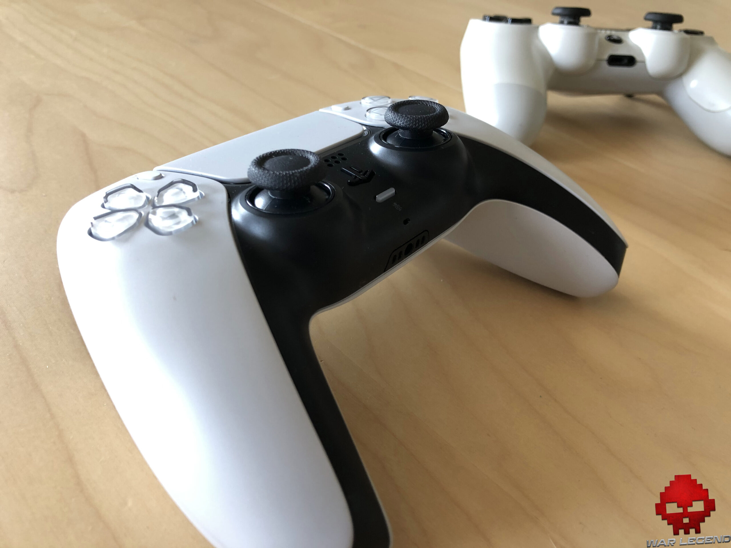 La bande lumineuse à l’arrière de la DualShock 4 a ici disparu, simplement remplacée par la prise USB-C. Les gâchettes sont plus imposantes afin de proposer une course étendue. Les touches sont quant à elle en plastique simple, toujours dans cet esprit de pureté avec des symboles gris sur fond blanc. On pourra regretter que Sony n’ait pas fait le choix de proposer un matériau un peu plus confortable pour les touches et les joysticks, mais en soi ça fait le taf et ce n’est pas le principal centre d’intérêt de cette manette.
