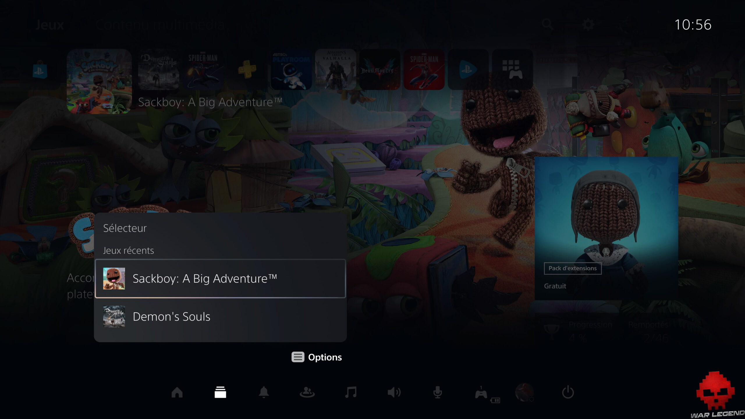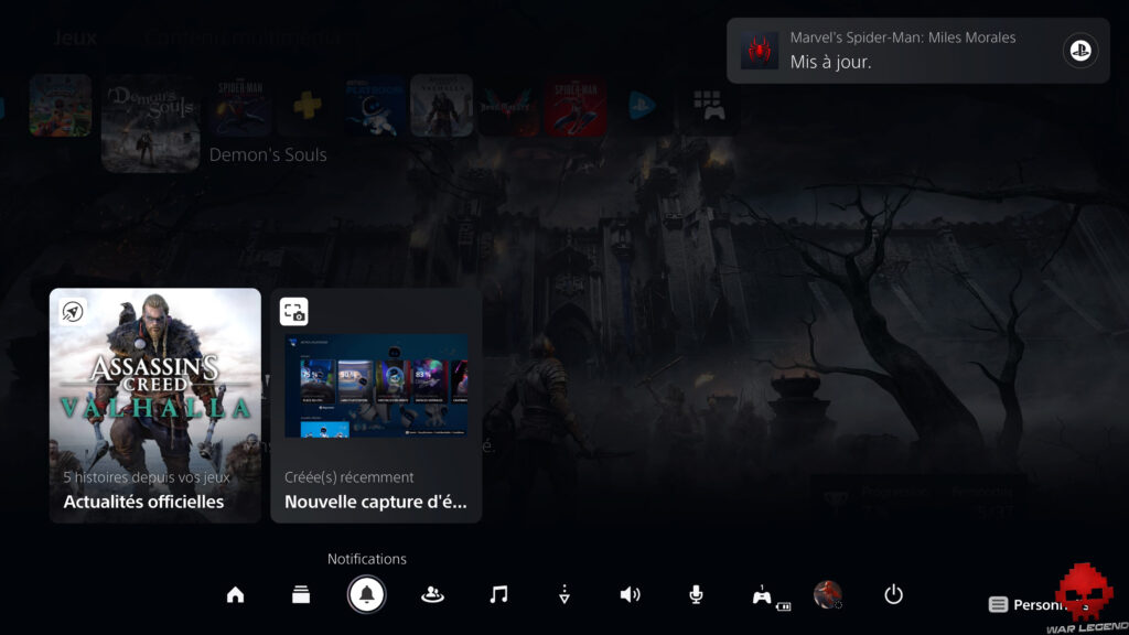 Le bouton Home de la DualSense permet d’afficher une seconde barre de menus qui déboule depuis le bas de l’écran pour donner accès à toutes les fonctionnalités utiles, tout ceci sans quitter le jeu en cours. Vous pouvez ainsi consulter vos téléchargements par exemple ou bien lancer un jeu récent.