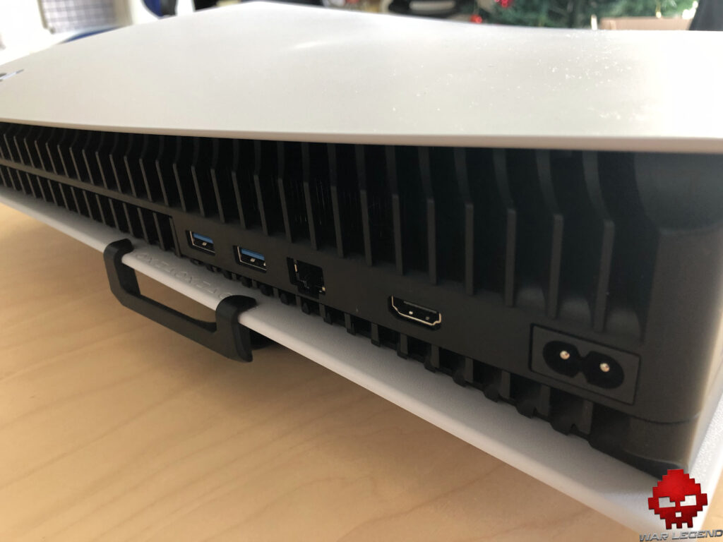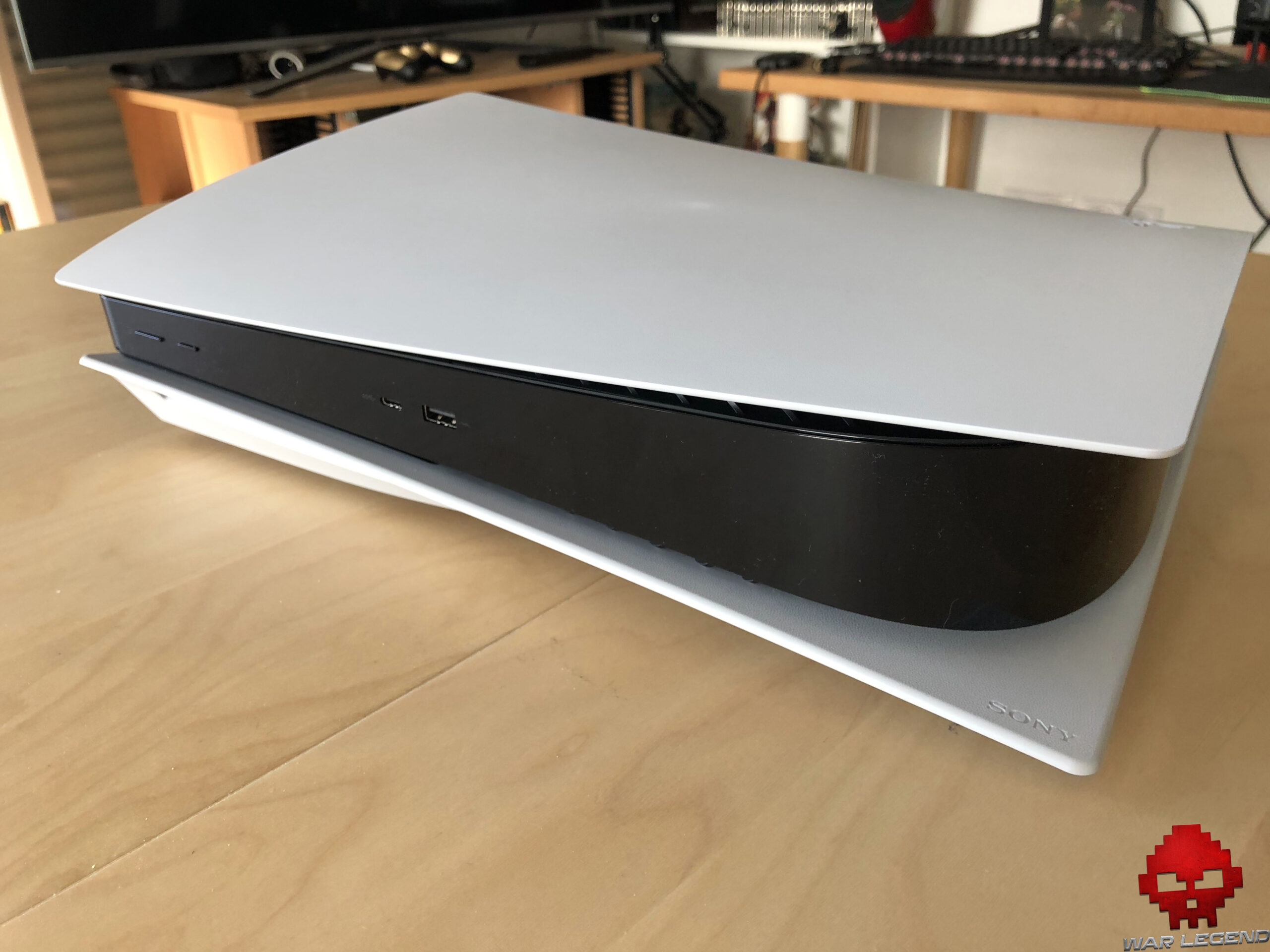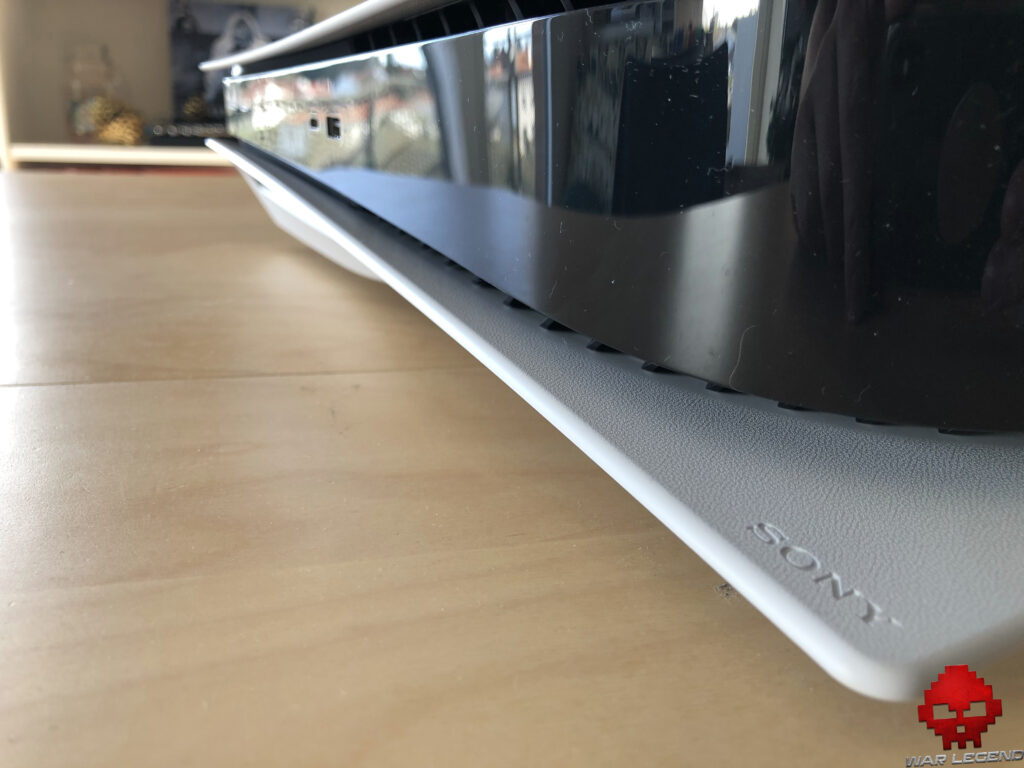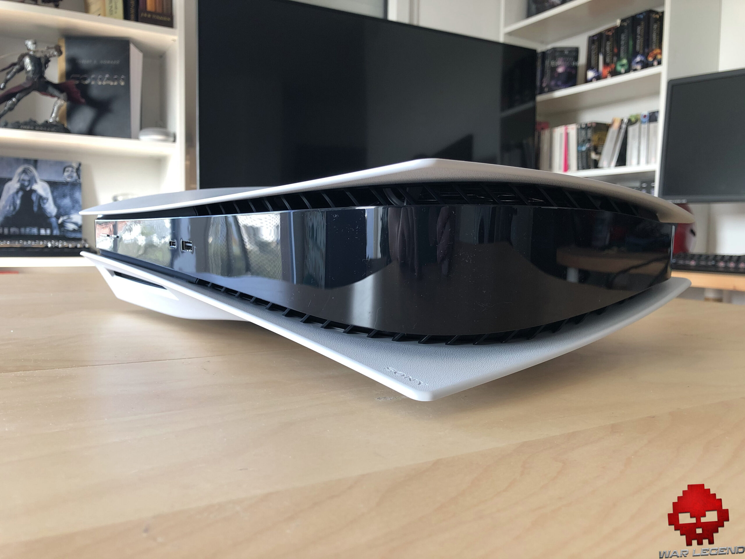 Mais pourquoi cette console est-elle si imposante ? Car tant de puissance, ça prend de la place. La PS5 est capable de faire beaucoup, mais comme toujours dans ces cas-là, cela signifie que ça va chauffer dur. Un peu plus de place permet aux composants de mieux respirer, l’air peut circuler un peu plus librement. La ventilation se trouve d’ailleurs à la jonction de la console et des feuilles blanches qui l’enserrent. Au cours de nos tests, nous n’avons pas constaté de problèmes de surchauffe : la console reste toujours à température raisonnable et l’air chaud qui s’échappe de la ventilation ne cause pas de soucis. Veillez cependant à laisser un peu d’espace afin de permettre à l’air d’être correctement évacué.