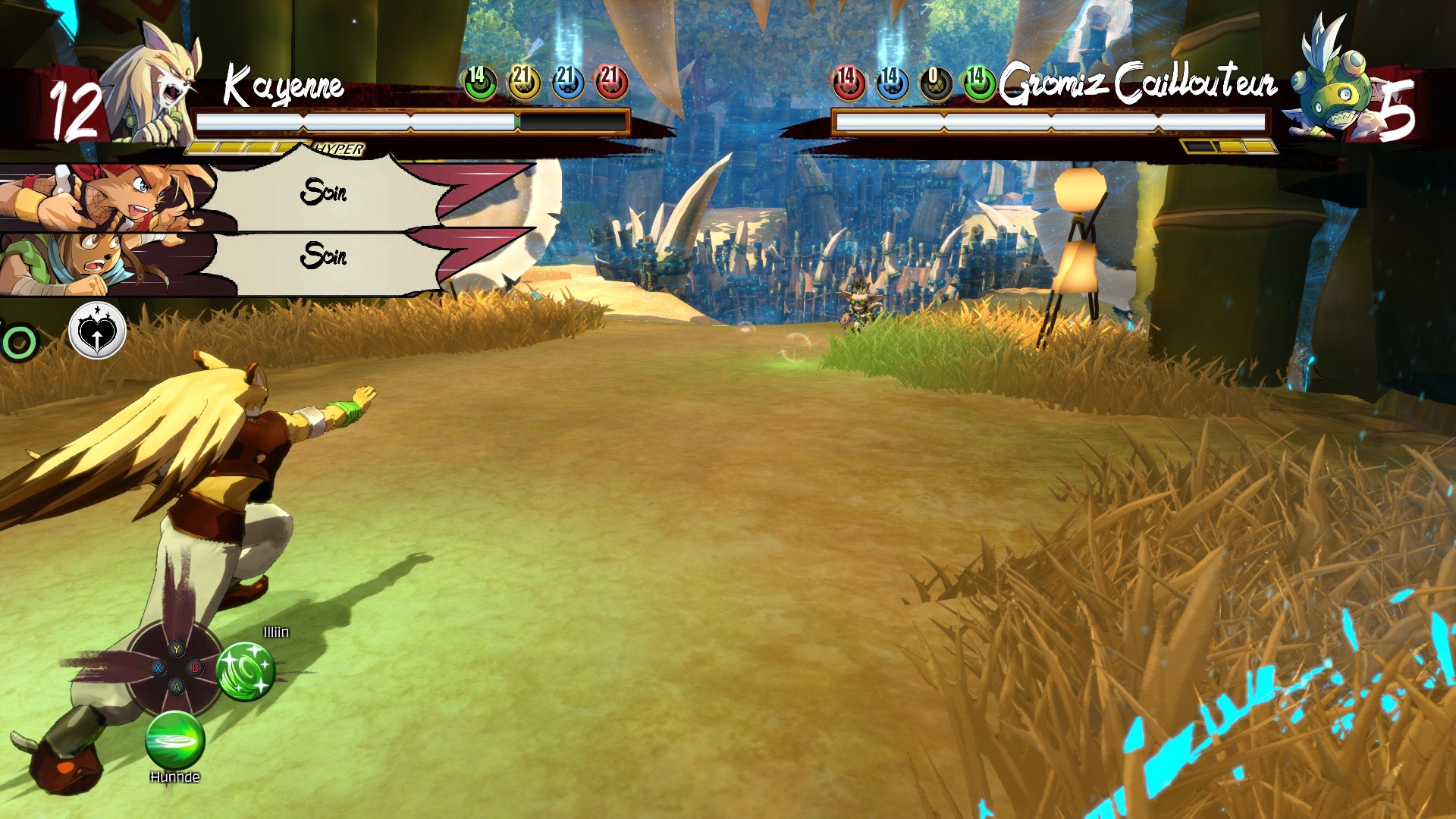 Pourtant, il y avait vraiment de quoi enrichir drastiquement le système de combat. Malheureusement, on se retrouve ici à l’opposé à cause d’une mauvaise utilisation de la mécanique. Pour lancer une magie, vous devrez avoir suffisamment de Shi de l’élément concerné (voyez le Shi comme du mana ou du chakra). Ce Shi, vous pouvez le recharger en vous concentrant, comme pourrait le faire Naruto avec du chakra. Seulement, il faut attendre que les barrières de l’arène soient de la même couleur que l’élément que vous voulez recharger pour pouvoir le faire. Vous rechargez toujours l’élément de la même couleur que l’arène.