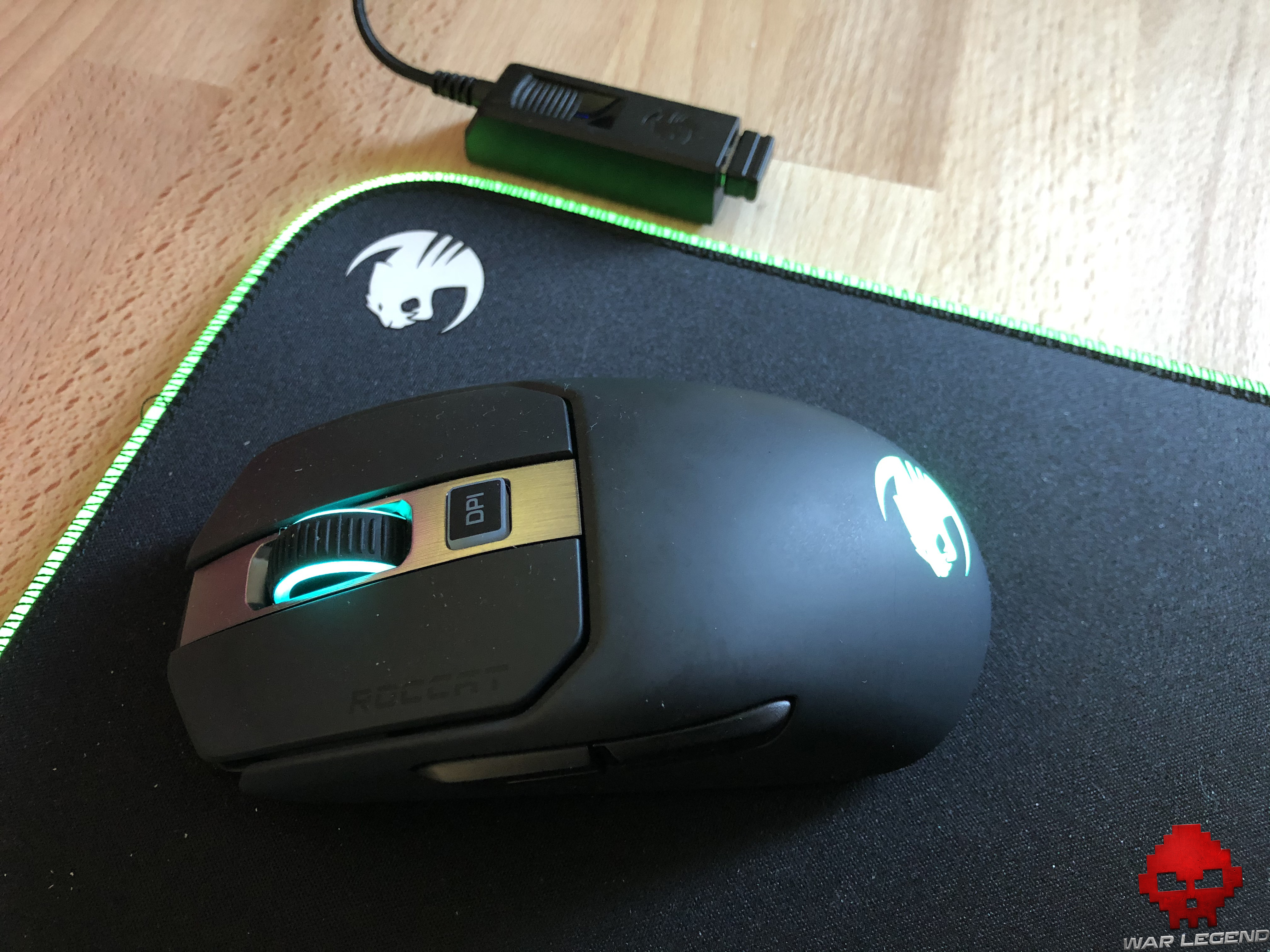 Le design est rehaussé de deux points d’illumination discrets : la roulette en elle-même et le logo Roccat, pour un ensemble à l’image de la souris, à savoir discret et élégant.