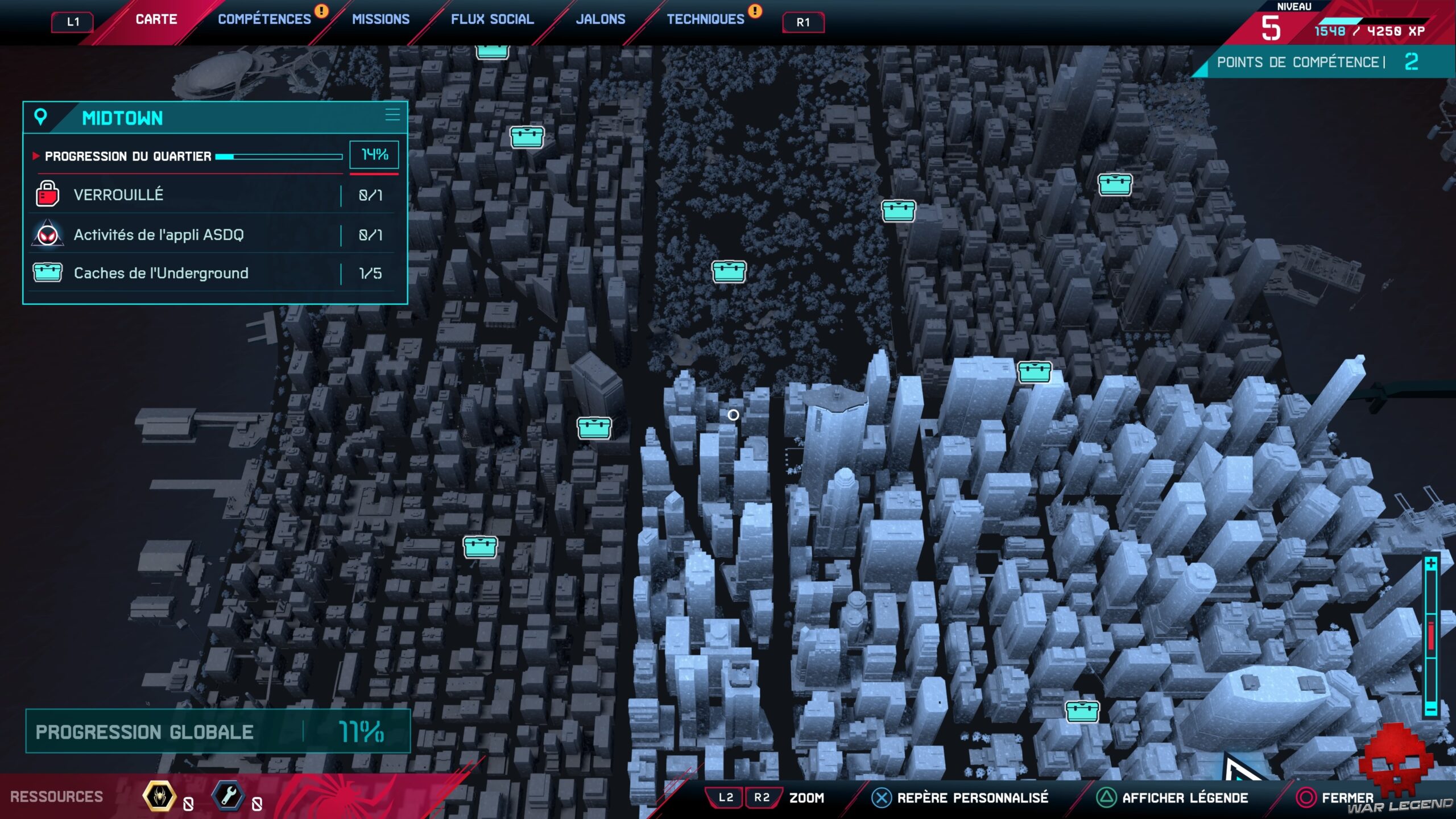Il sera également possible de trouver des caches technologiques un peu partout à travers la ville pour améliorer les gadgets de Spidey, mais aussi de démanteler des labos de Roxxon.