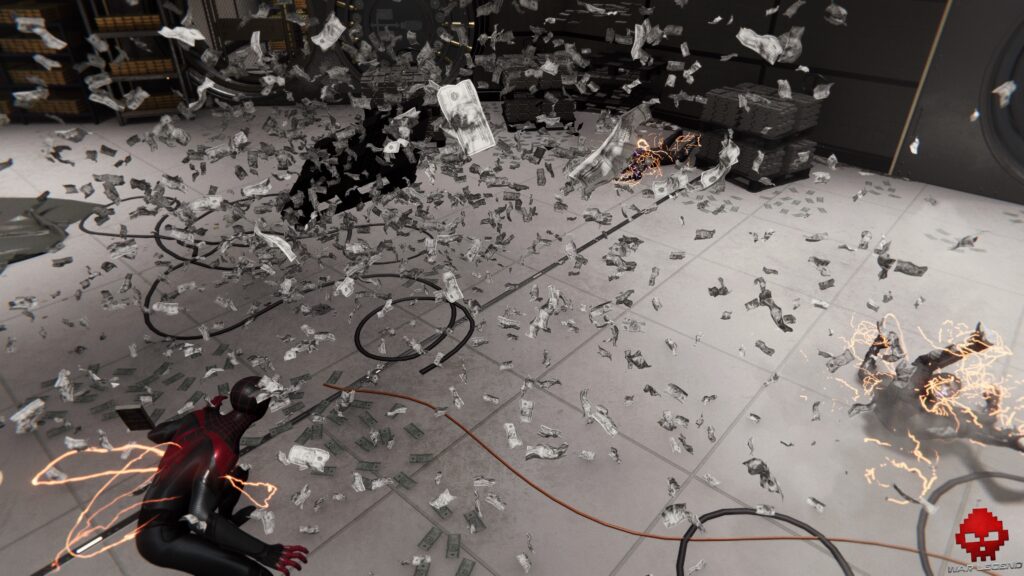 Côté gameplay, on reprend les bases de Spider-Man et on y ajoute un soupçon de bioélectricité… et ça fait le taf ! Là où les bastons avec Peter Parker étaient sympathiques mais un peu répétitives à la longue (surtout quand on est passé par la case de l’excellente trilogie Batman Arkham), celles de Miles Morales envoient plus grâce à ses pouvoirs en rab.