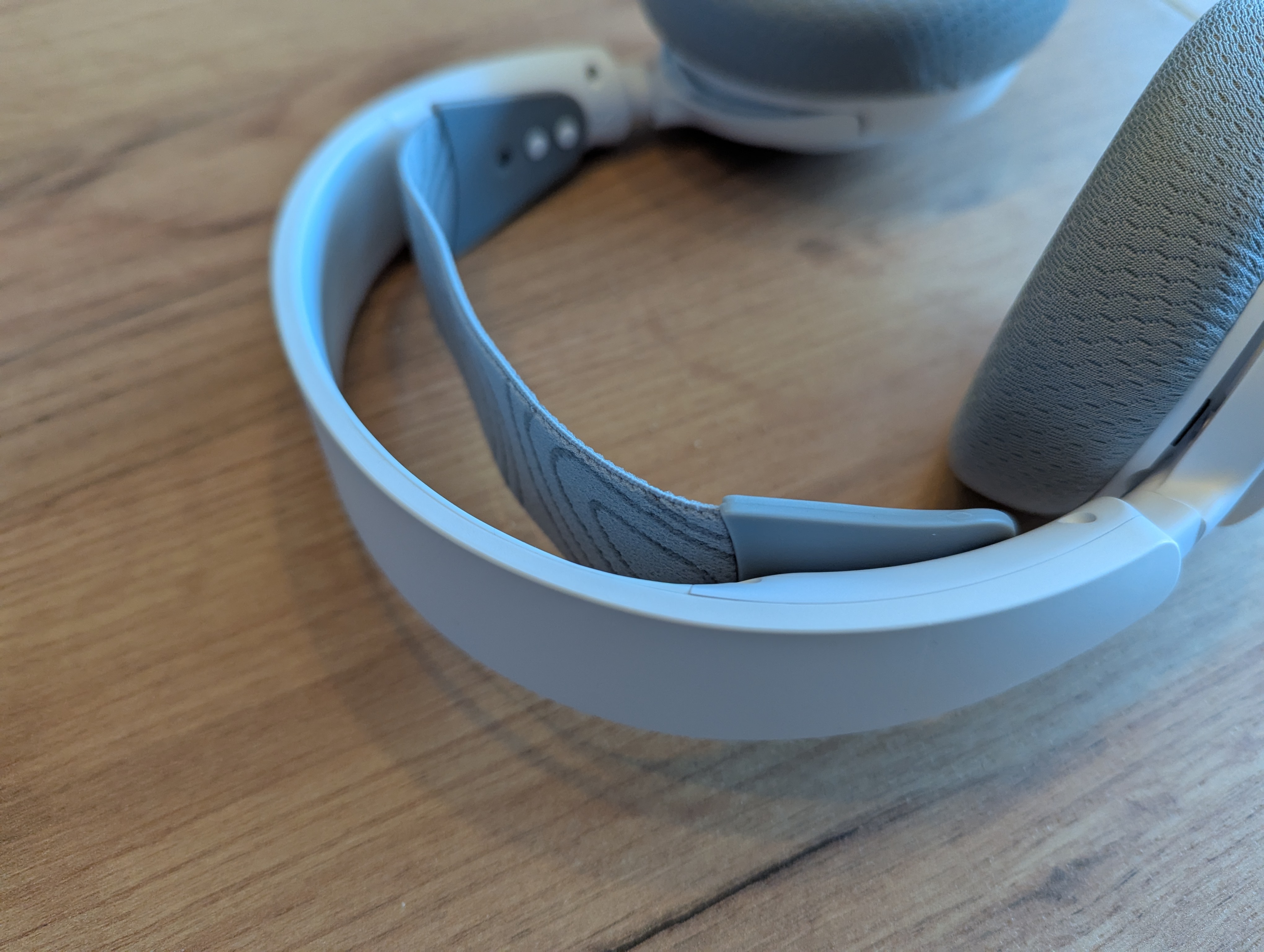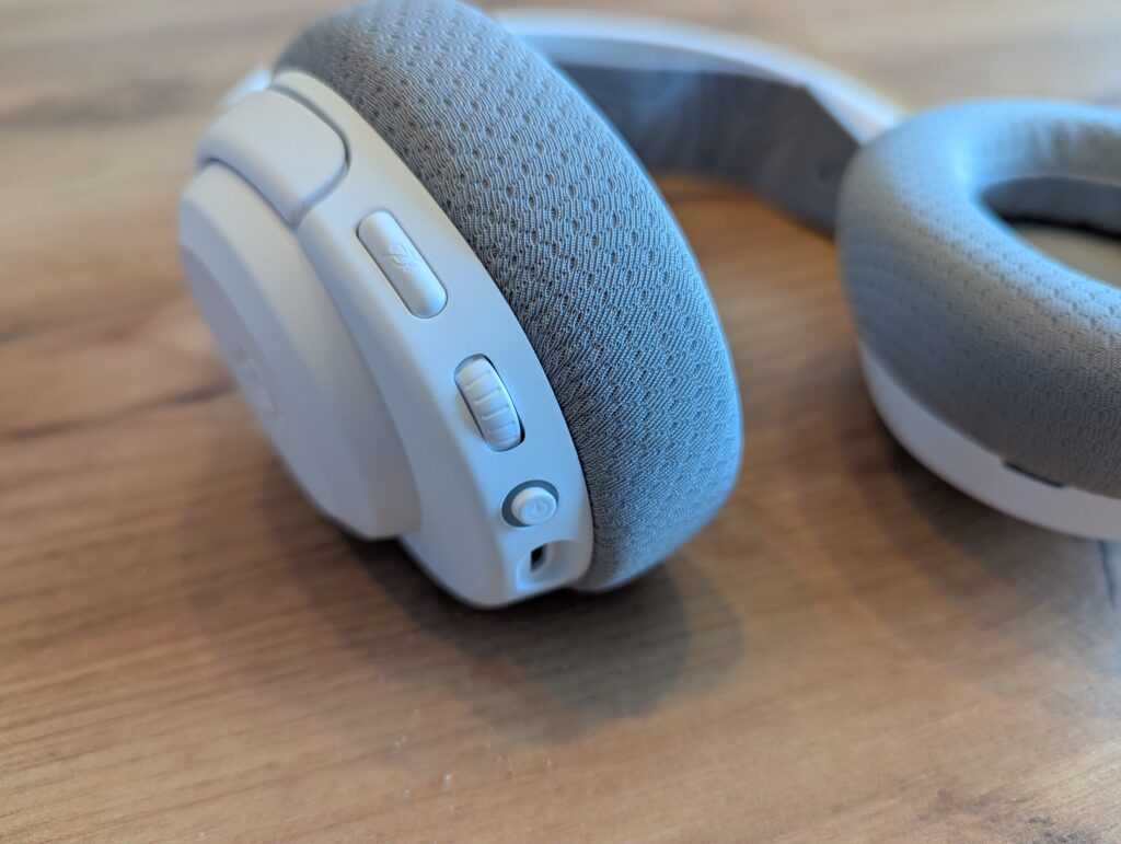 Le confort est sans conteste le point fort majeur de ce casque. Le système d’arceau double, combinant une structure principale et un bandeau élastique de type « masque de ski » réglable, répartit parfaitement le poids sur le crâne. Même après plusieurs heures, aucune gêne ne se fait sentir. Les oreillettes, équipées de coussinets en tissu « AirWeave », sont respirantes et englobent bien les oreilles, limitant la pression et la chauffe. Les commandes, regroupées sur l’oreillette gauche, comprennent la molette de volume, le bouton de mute du micro et le bouton d’alimentation servant aussi à la gestion Bluetooth. Leur proximité demande un léger temps d’adaptation, mais leur utilisation devient vite intuitive.