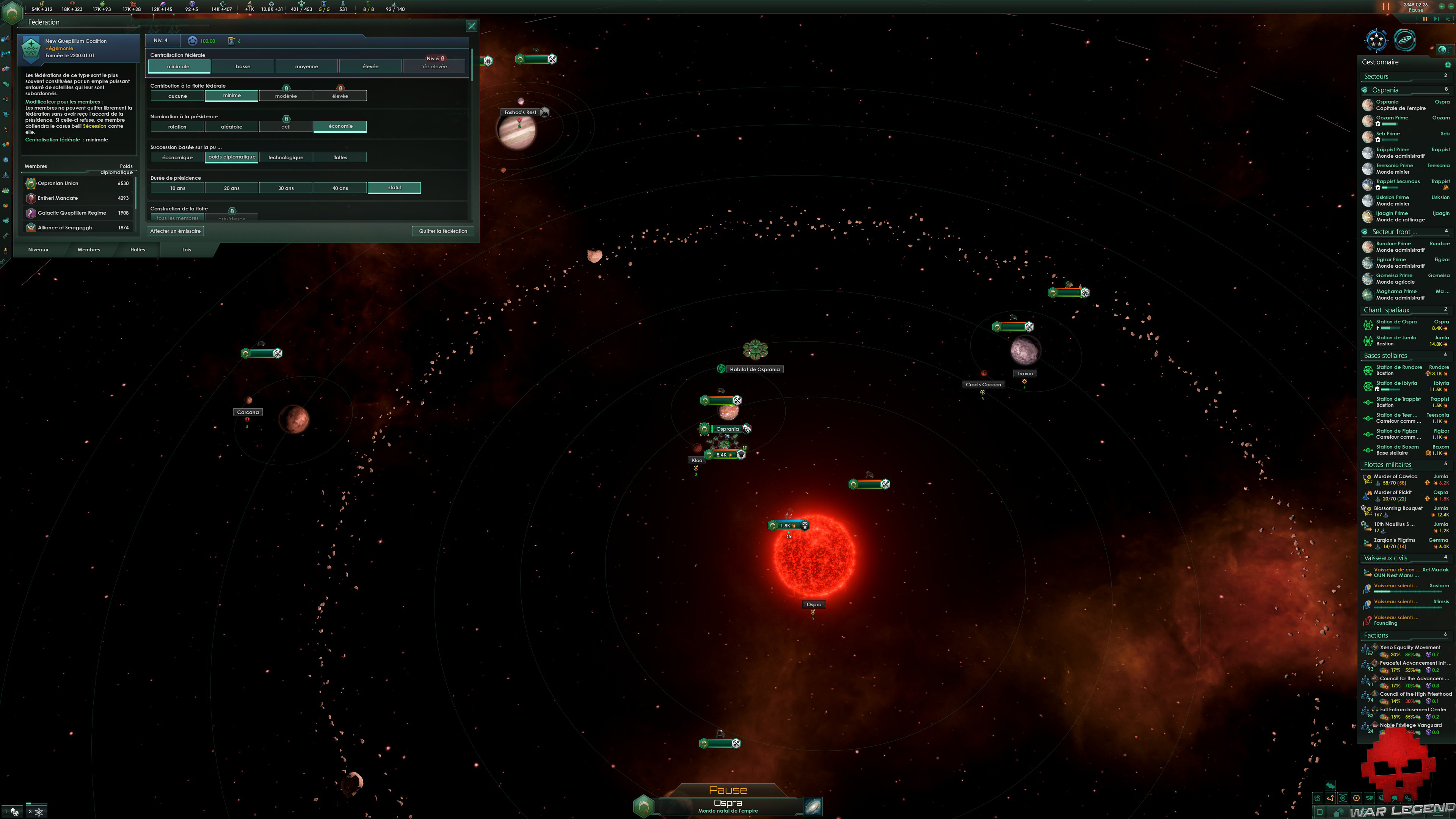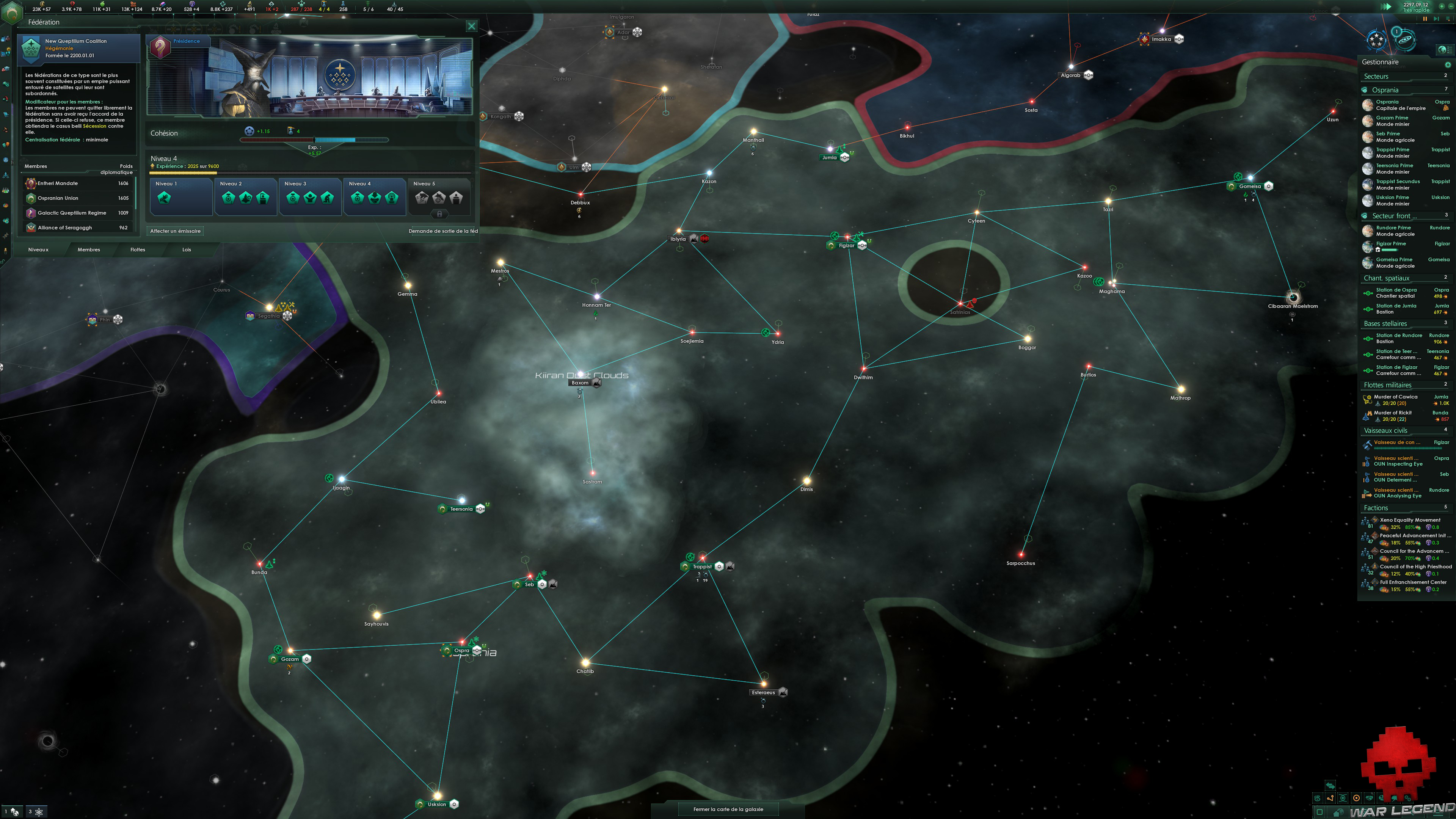 La progression est très lente, mais pourra s’accélérer à mesure que vous rassemblerez toujours plus de civilisations importantes. Chaque fédération apporte beaucoup de richesse au gameplay et le plus haut niveau de chacune apporte de gros avantages bien distincts. Comme dis plus haut, elles sont à présent presque incontournables.
