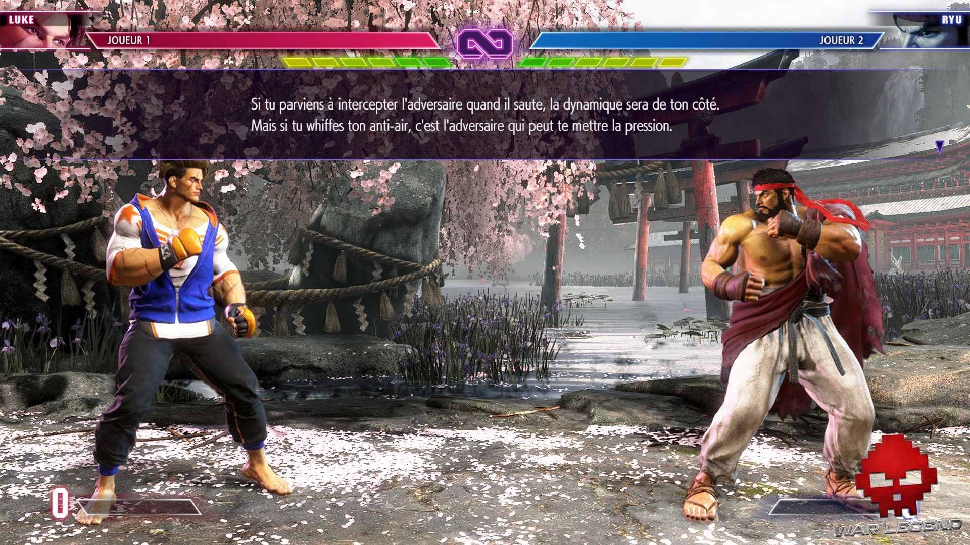 Déjà un point fort de Guilty Gear: Strive, Street Fighter 6 pousse le bouchon encore plus loin dans l’enseignement des arcanes de la dose en utilisant parfaitement le jargon – souvent abscons – utilisé par les joueurs de jeux de baston, pourtant nécessaire pour comprendre toutes les subtilités que propose ce genre de jeu : whiff, recovery, cancel, juggle, shoto, hit confirm, block stun, neutral game, tout y passe, et la localisation française – sans doute inspiré du travail de Ken Bogard – a fait un travail remarquable pour rendre le tout compréhensible et surtout juste.