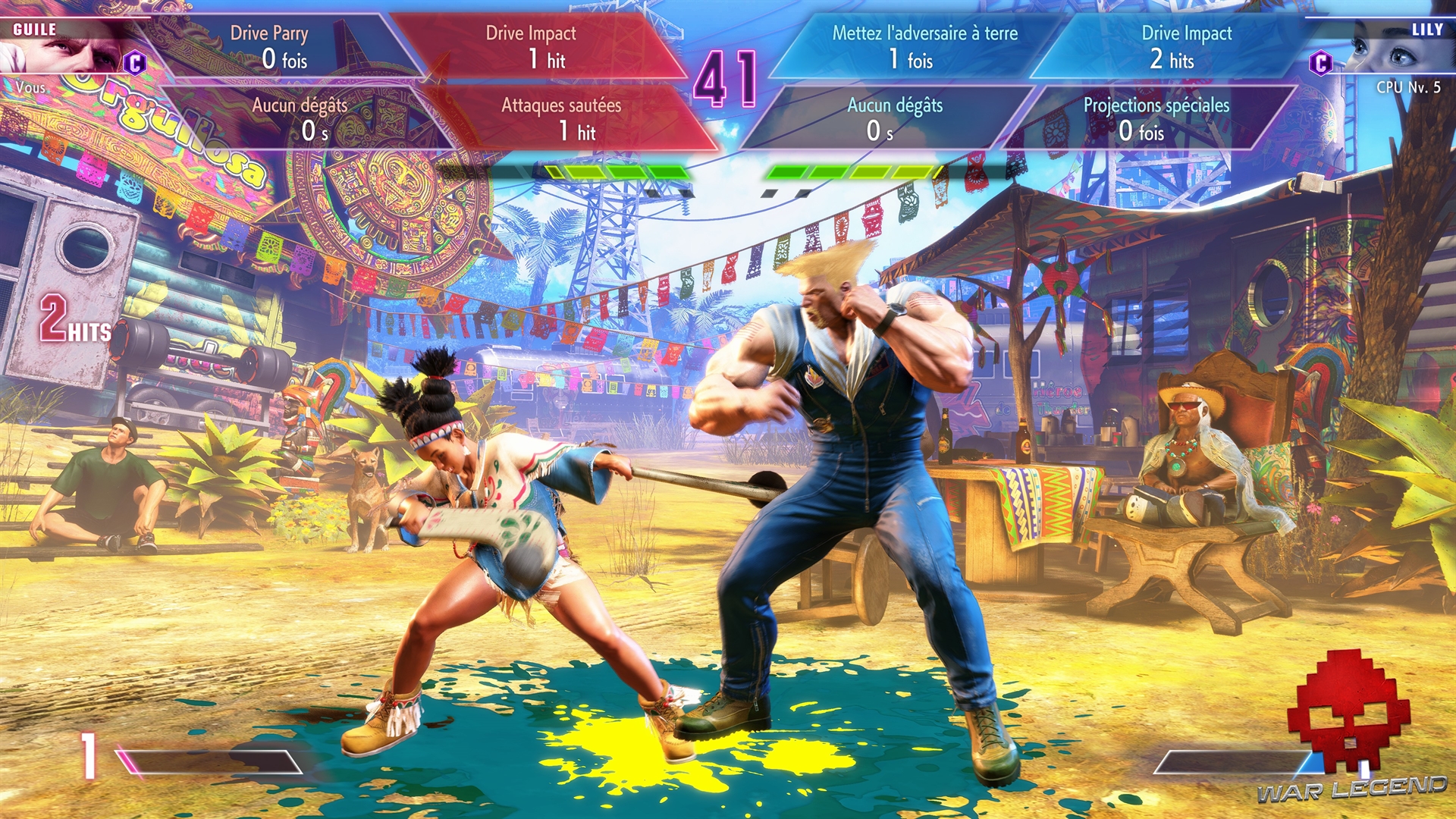 Et encore, ce n’est que la surface visible de l’iceberg, incarné par le mode entraînement le plus complet jamais vu dans un jeu de baston, alors que le genre aime garder une certaine forme de sobriété dès qu’il est question de rentrer dans la partie purement technique. Les derniers Mortal Kombat et Tekken ont ouvert la voie, mais Street Fighter 6 donne tout simplement un accès simple et direct à la fameuse frame data, explicitant les propriétés dans le temps des différents coups, afin de comprendre instinctivement si le personnage est positif ou négatif dans la garde adverse.