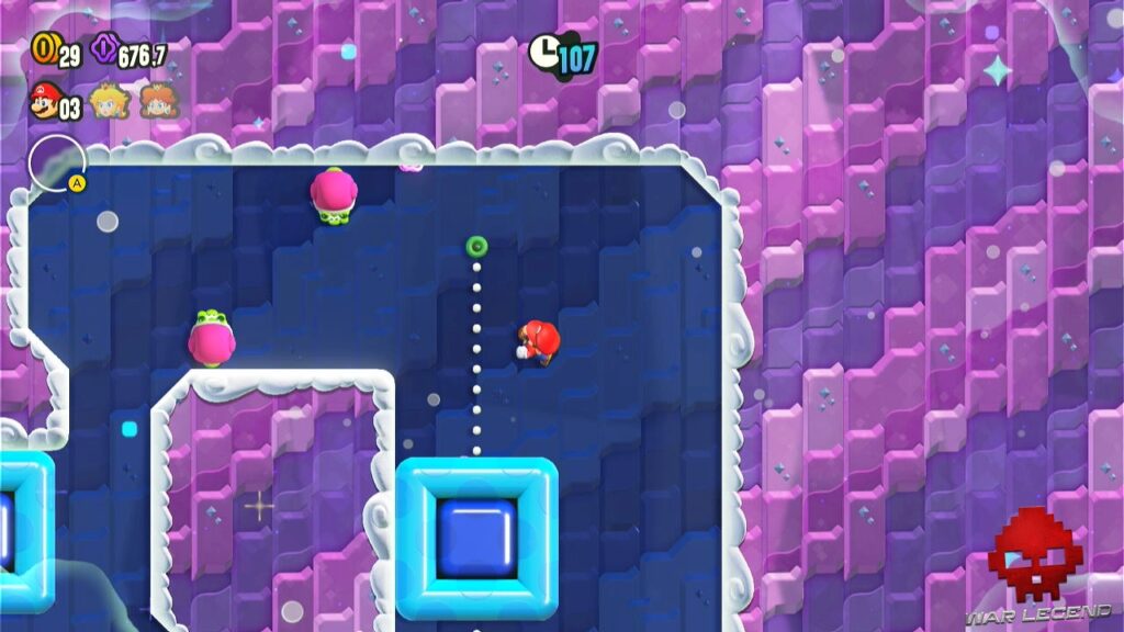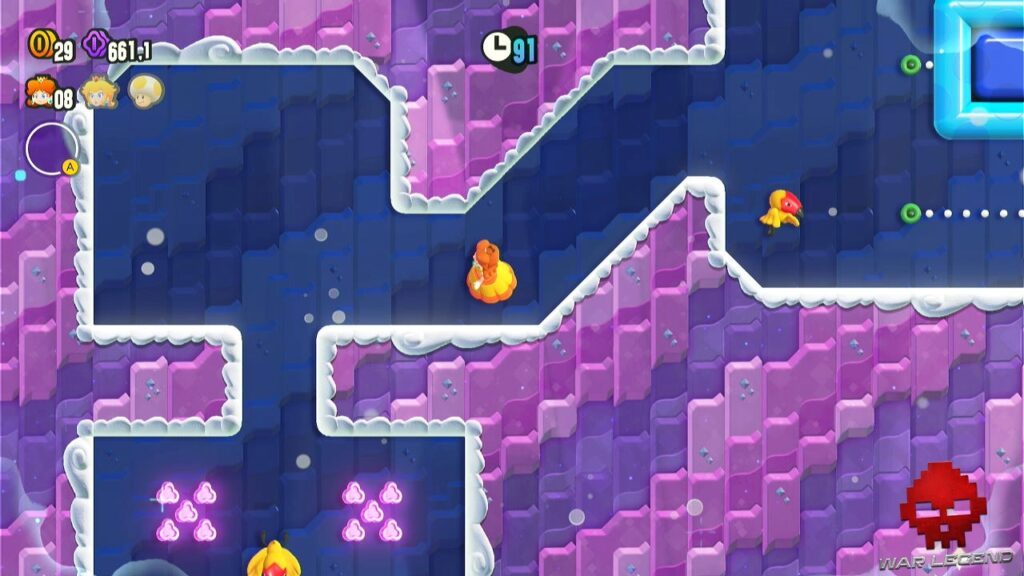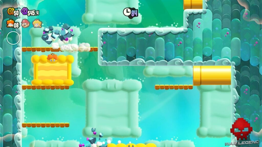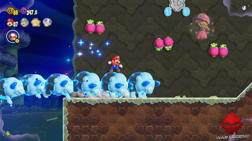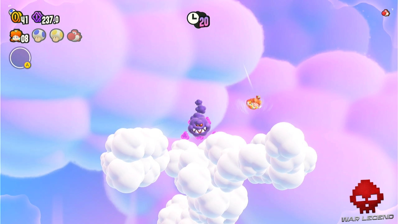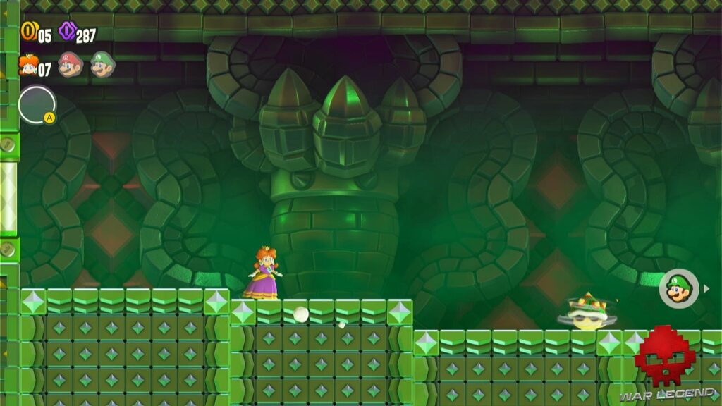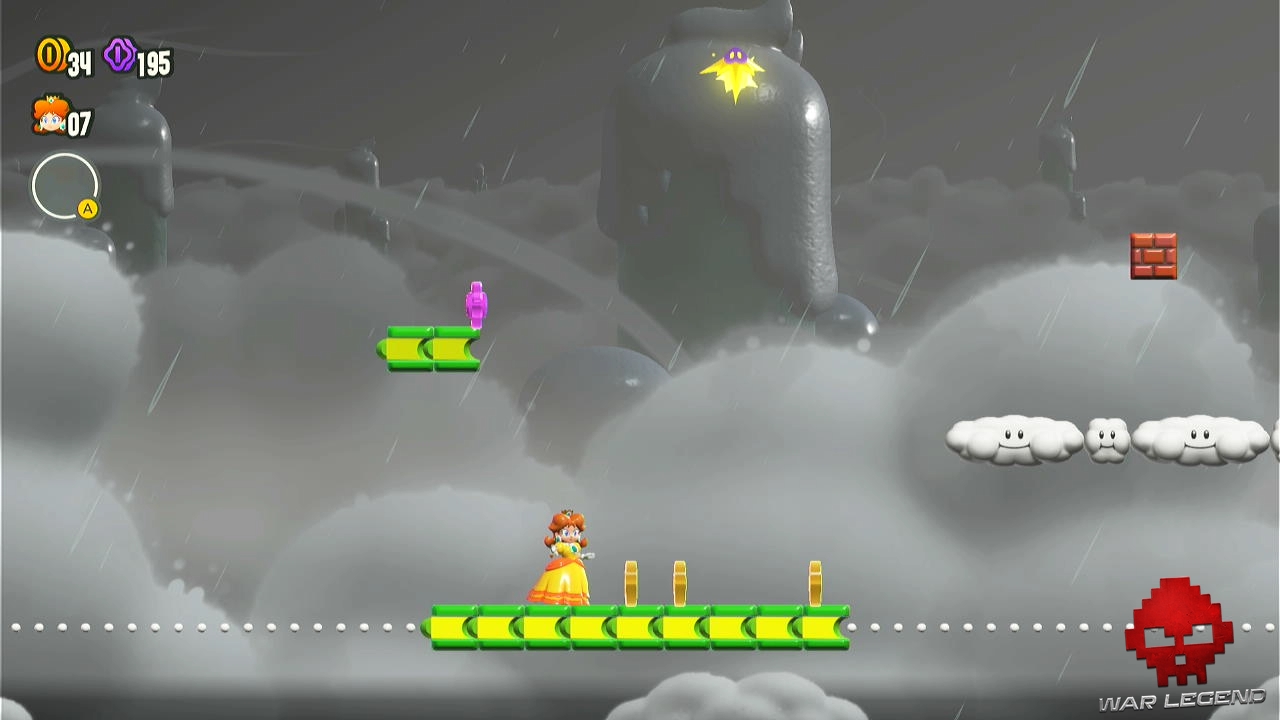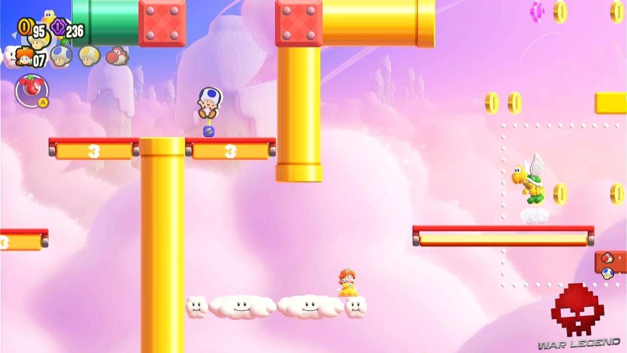 Sans crier gare, Wonder nous balade alors de niveau en niveau, de world maps en world maps, appliquant la formule à la lettre. On traverse les niveaux en courant, en sautant et en nageant, écrasant des goombas à coups de botte coquée/escarpin de princesse, en réapprenant à gérer sa vélocité et gavé des power-ups que l’on connaît déjà.