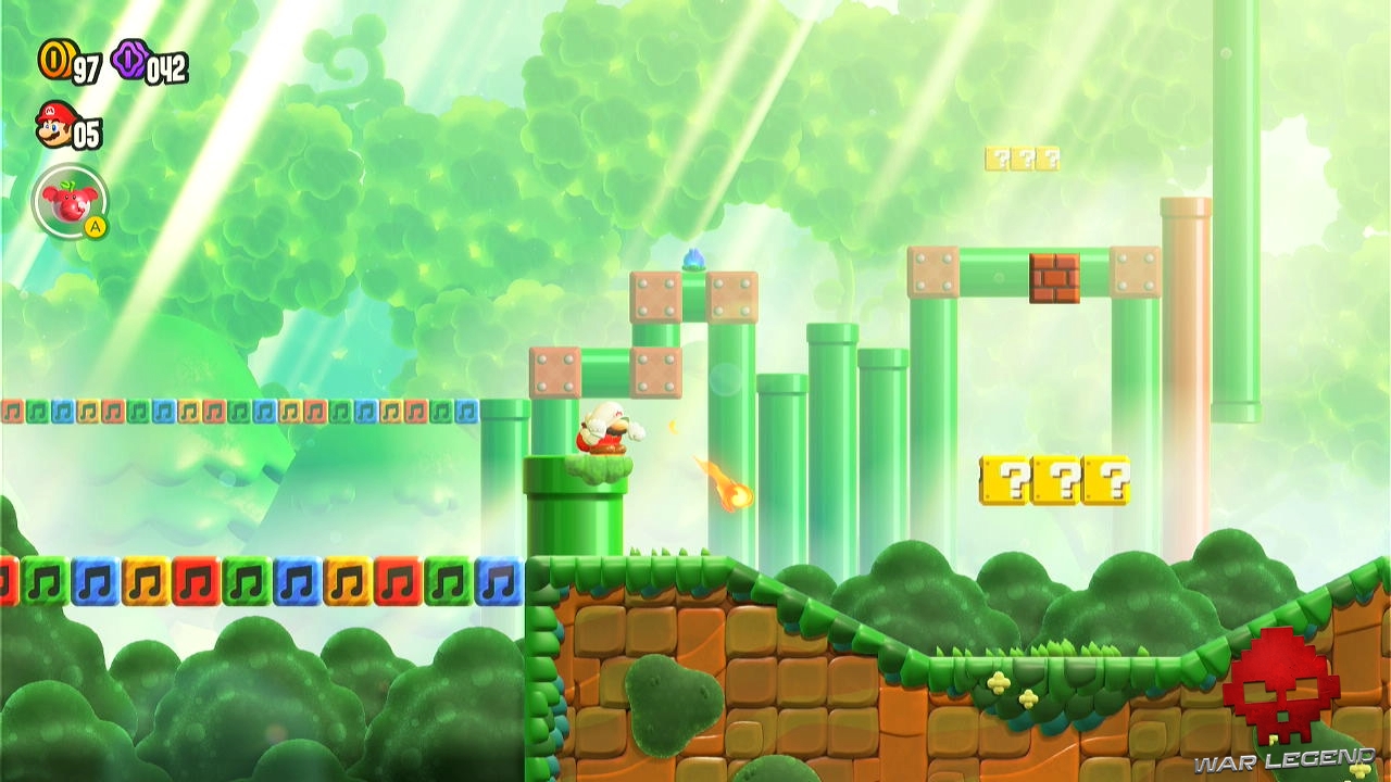 On pourrait naïvement croire que Super Mario Bros. Wonder est une simple retouche artistique de la formule Super Mario en 2D, mais c’est un titre bien plus généreux qu’il en a l’air. Les plaisirs simples sont intacts, servis par un level design toujours compétent, mais qui représentent en réalité une mise en bouche pour les surprises que le titre aime balancer en rafale, et ce sans jamais faillir. Chaque niveau propose une phase de gameplay qui a toutes les chances de dessiner un sourire niais et irrépressible sur votre visage, prouvant que même 40 ans plus tard, Mario a toujours un truc à dire… entre tradition et modernité. Eh ouais, on n’a pas peur des formules chocs, chez War Legend.