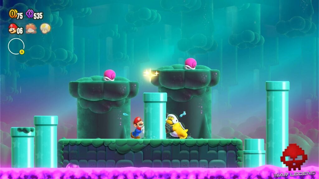 Super Mario Bros. Wonder souhaite être une source d’amusement avant tout, quitte à proposer une expérience à la carte en donnant la possibilité de progresser tout en laissant les niveaux les plus difficiles derrière, ou un système de badges qui permet de profiter de compétences qui enrichissent le gameplay. Certains personnages sont même invincibles, facilitant le jeu en coopération avec les tout petits.