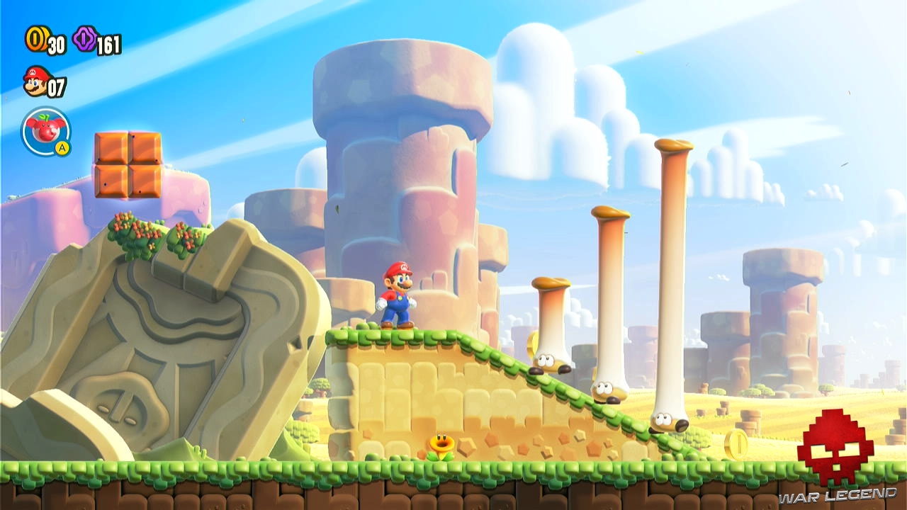 Les niveaux sont courts, mais denses, grâce à un level design qui arrive toujours à se renouveler. On n’a pas vraiment le temps de s’ennuyer durant la petite dizaine d’heures nécessaire pour terminer le jeu en ligne droite, dont le défi est – il faut le reconnaître – assez limité. Comme souvent, les complétionnistes auront toutefois du grain à moudre avec tous les bonus et fleurs cachés à collectionner, ainsi que les drapeaux parfaits à atteindre dans chaque niveau. D’autant plus que Wonder se révèle plutôt sans pitié sur les opportunités de les récupérer