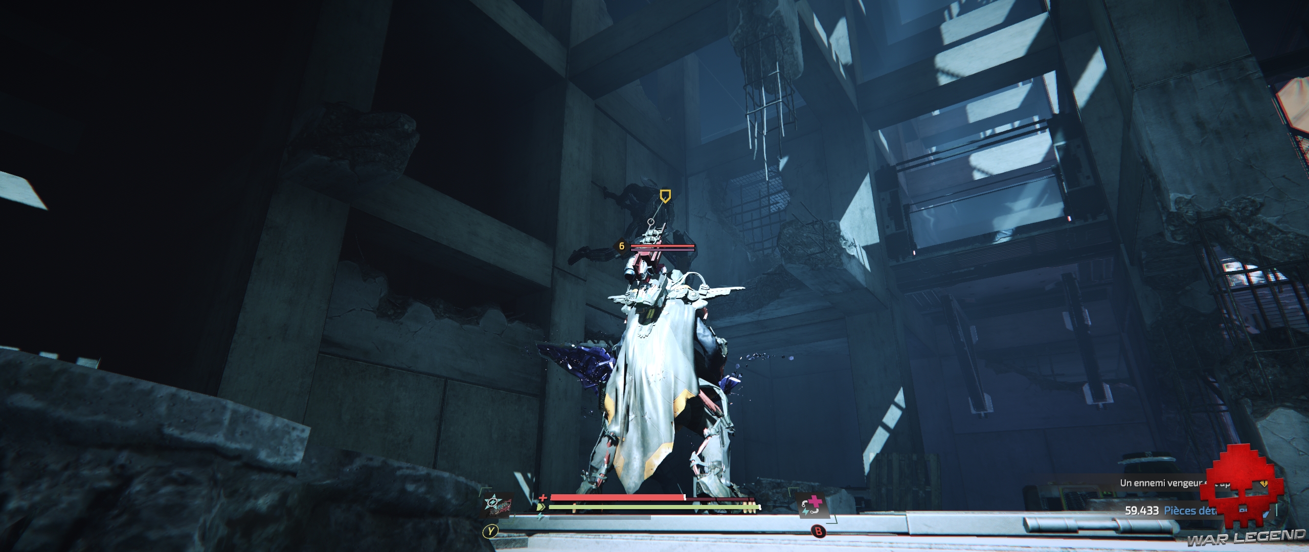 Évidemment, le concept phare de la licence est toujours sur le devant de la scène et vous devrez, une fois votre exosquelette sur le dos, les bras, les jambes – enfin, tout quoi -, récupérer armes et armures sur les cadavres encore chauds de vos victimes. Pour ce faire, le jeu utilise un système de verrouillage de partie du corps : on commence par lock un ennemi, puis on oriente le joystick pour déterminer le morceau qu’on l’on veut demander au boucher. Et comme il n’y a pas de boucher, on le découpe soi-même.