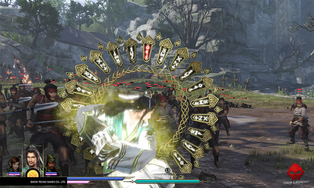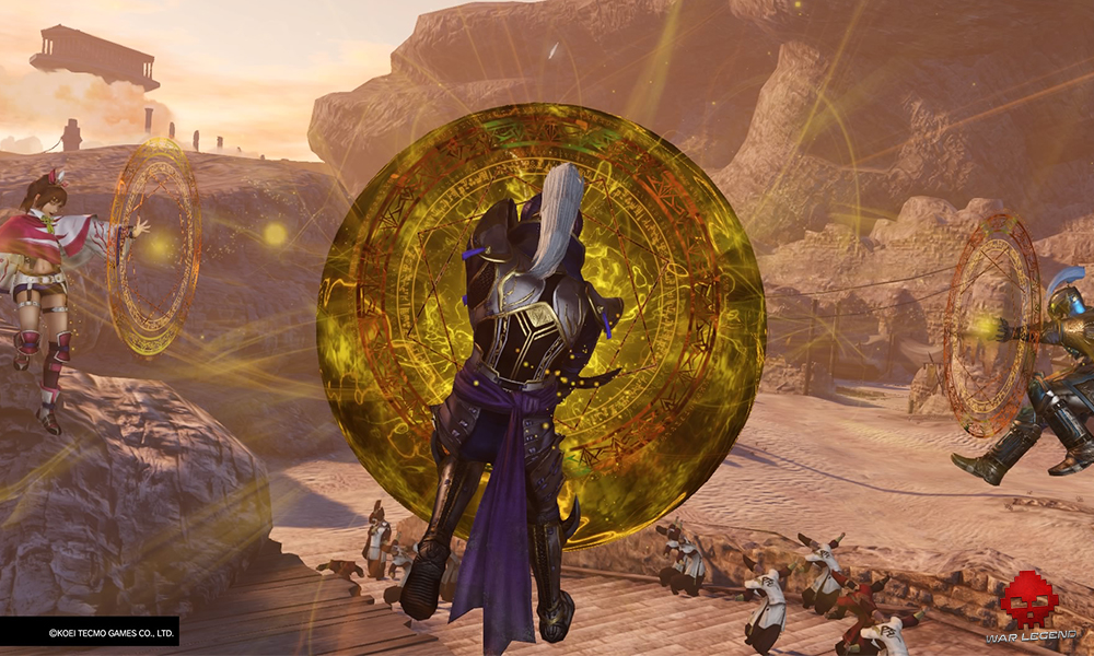 Et je ne vous ai pas parlé de la magie de groupe qui vous fait lancer, littéralement, un Genkidama, ou du mode rage où vous tapez plus fort, plus vite, et qui vous donne accès à une nouvelle attaque musou. Mode rage qui permettra d’ailleurs à certains personnages de se déifier grâce à un bracelet en forme d’Ouroboros. Et c’est reparti, nouveau musou, nouvelle magie unique et même nouvelle apparence.