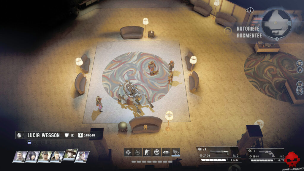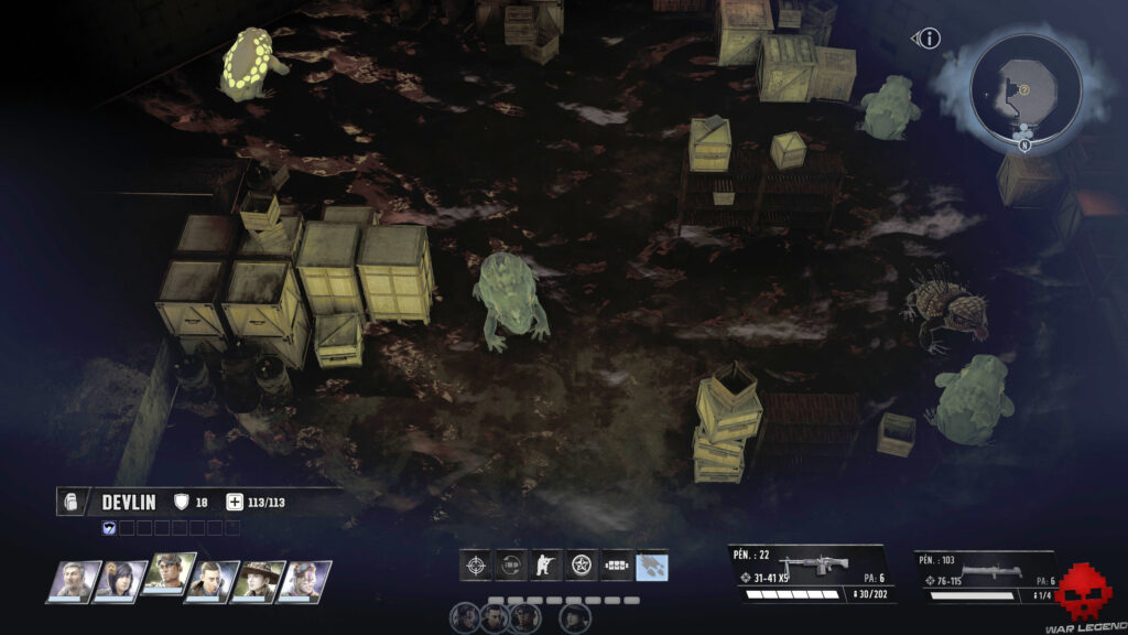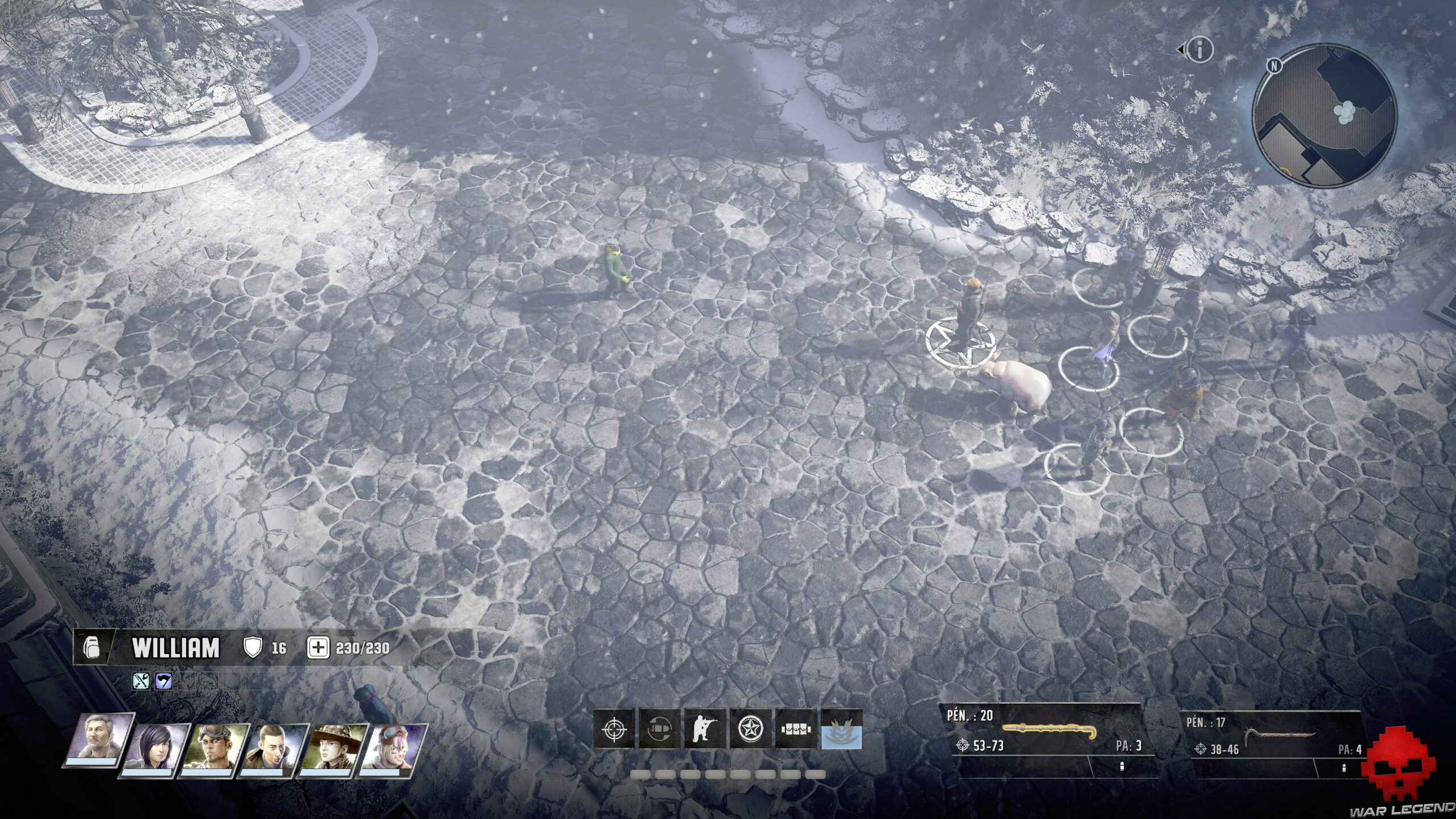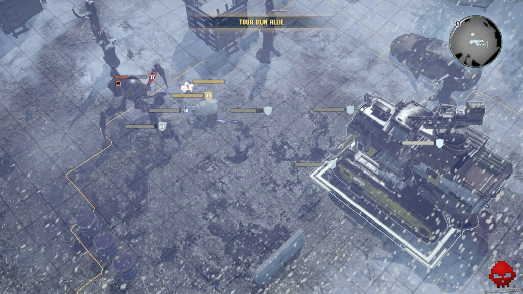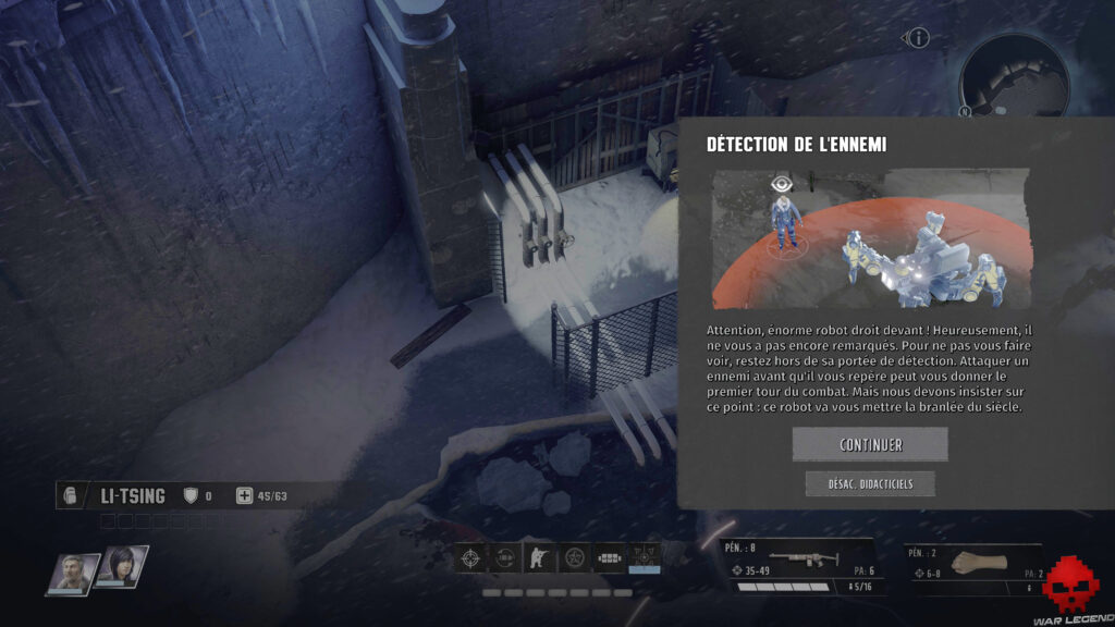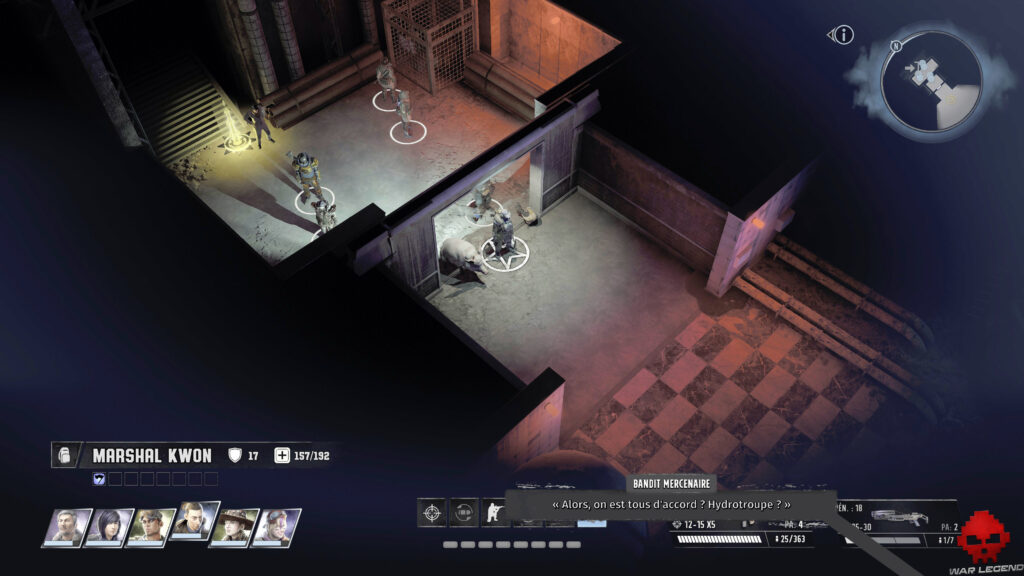 Dans Wasteland 3, il n’est pas question de s’accroupir… à moins de rester immobile. En définitive, ça n’a pas beaucoup d’importance, car la discrétion est déterminée par une caractéristique. Soit. Par contre, aucune possibilité de valider une mise en place : dès qu’on entre dans la sphère de vision d’un ennemi, ce n’est qu’une question de temps avant qu’il nous repère. Cela limite considérablement les possibilités et c’est un peu dommage.
