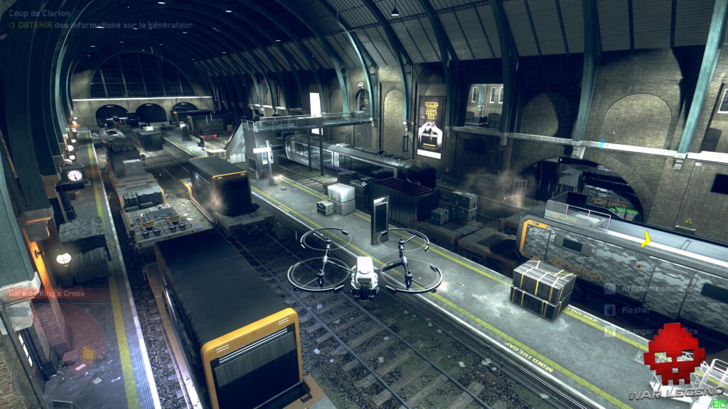 Ce morceau de futur à portée de vue fait plutôt froid dans le dos, particulièrement immersif avec un Londres plus vrai que nature. Ubisoft prouve une fois de plus qu’il sait faire des mondes ouverts, notamment calqués sur la réalité. On reconnaît parfaitement le parlement britannique, mais beaucoup moins le niveau d’alerte de sécurité nationale projeté de manière holographique sur Big Ben. Des gardes lourdement armés patrouillent les rues, les drones tueurs « anti-terroristes » aussi.