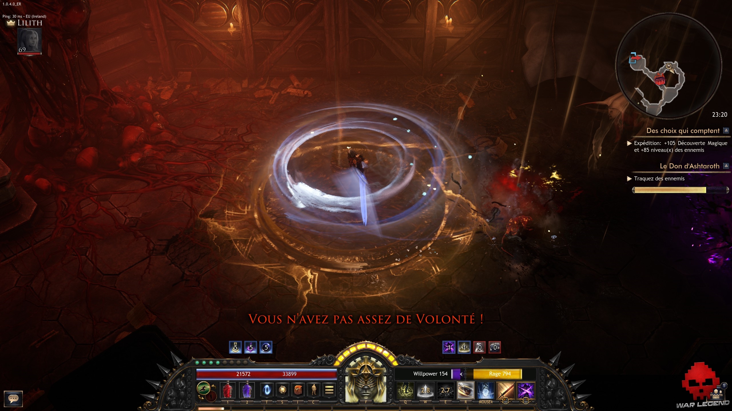 Il va ensuite falloir apprendre à gérer votre style de jeu depuis les barres d’énergies, Volonté pour les sorts, Rage pour les attaques. Vider l’une des deux barres revient à remplir l’autre ; un principe plutôt bien pensé qui implique une gestion intelligente de ses facultés, surtout avec les créations hybrides.