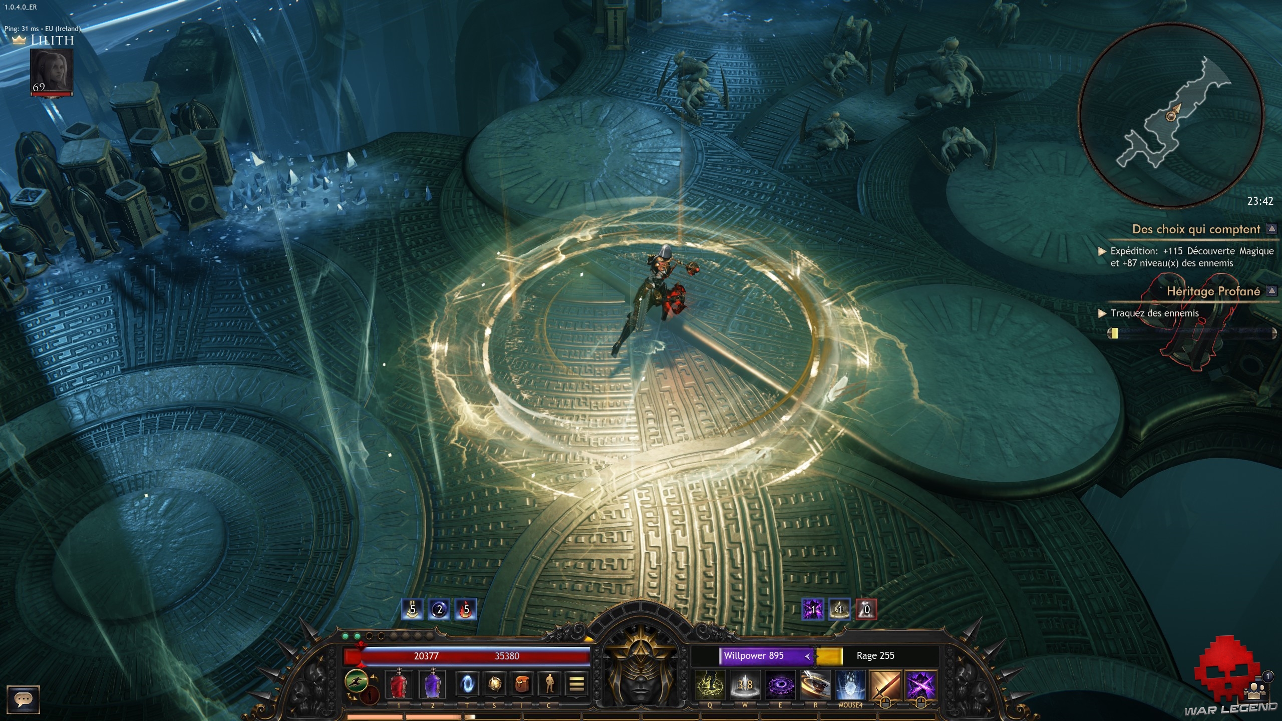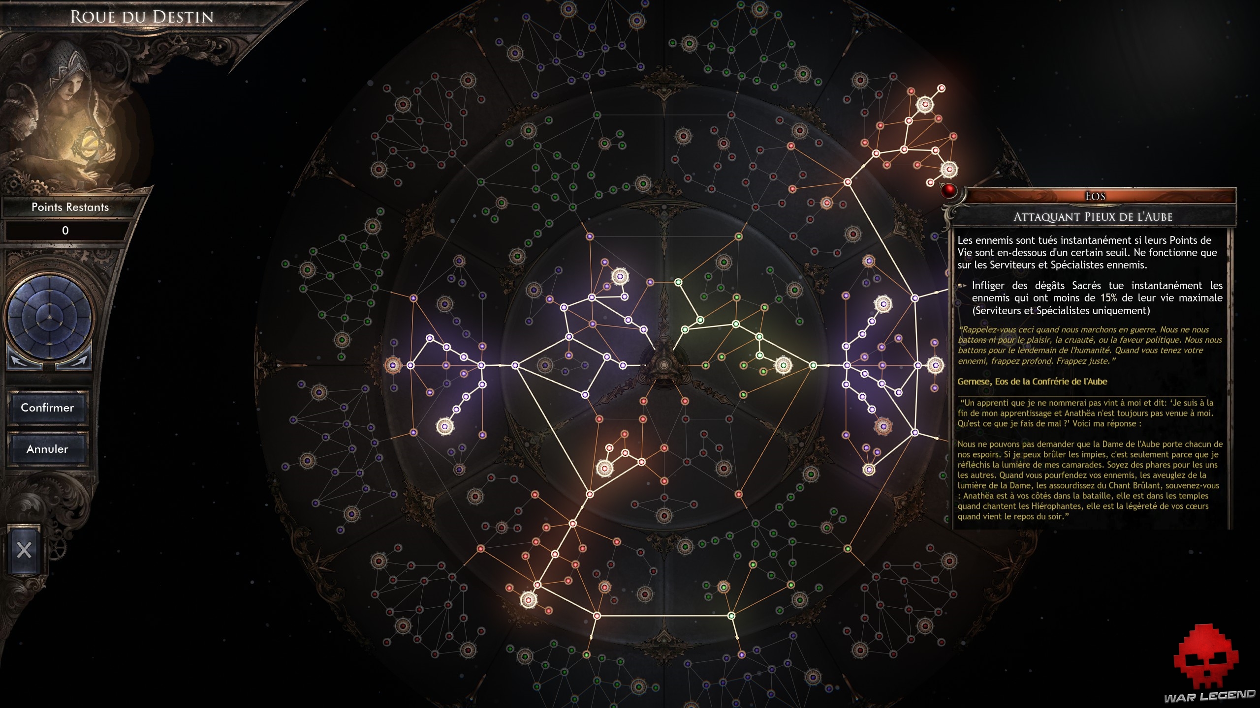 En dehors de cette belle palette de capacités mortellement jouissive, un autre élément bien particulier va servir à peaufiner plus en détail notre avatar. La Roue du Destin de son nom, une sorte de sphérier à la PoE qui troque (en partie) son côté tentaculaire pour se présenter sous la forme de disques que l’on peut tourner.