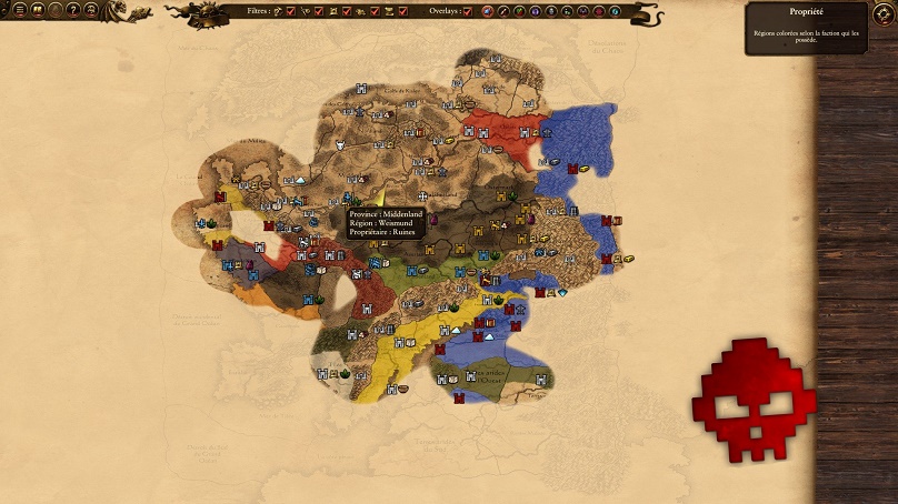 On reste dans un schéma de campagne classique, avec des objectifs propres à chaque nation, mais contrairement aux précédents Total War, chacune de celles-ci disposent de mécaniques uniques qui influeront grandement votre manière de jouer la campagne solo. Certes, chaque peuple avait un passif propre à lui-même dans les autres titres de la license, mais Total War: Warhammer met une claque aux autres par la singularité apportée au style de jeu de chaque race.