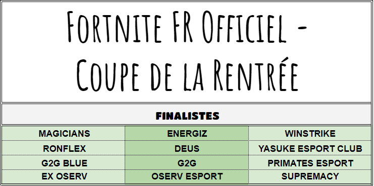 Du Dimanche 2 Septembre au Mardi 4 Septembre Août, le Tournoi Fortnite Coupe de la Rentrée Squad vous attend !
