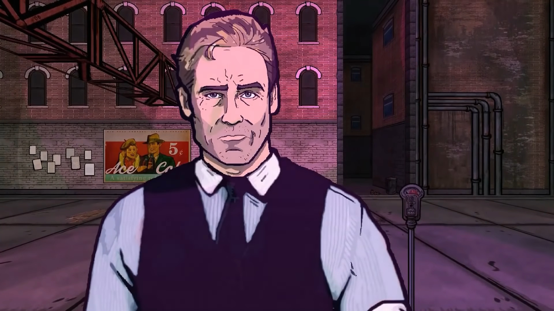 L’occasion pour New Blood de dévoiler son nouveau bébé, en parfaite adéquation avec la ligne éditoriale, tout en complétant la collection de l’éditeur : Fallen Aces. Via des sprites dessinés à la main et une ambiance film Noir, le titre projette le joueur dans le monde de la mafia des années 30. Les flics se font tuer les uns après les autres, alors il est temps de rendre la pareille.
