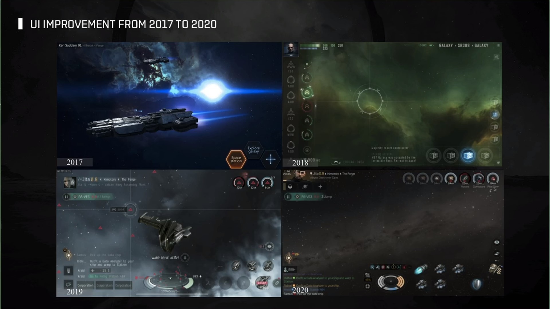EVE Online est un jeu complexe avec beaucoup d’informations. Nous avons redessiné l’interface utilisateur à plusieurs reprises pour trouver un moyen efficace de les conserver. Nous les avons réorganisé, classées par ordre de priorité et placées dans une position différente.