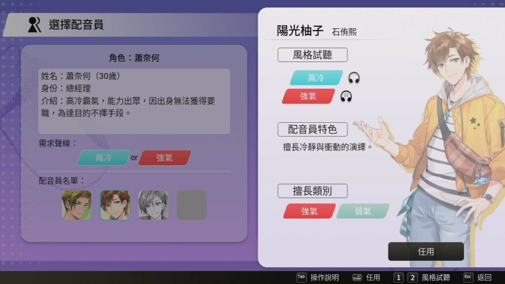 Vous l’avez deviné, Voice Love On Air sera très tourné vers le Boys’ Love, c’est-à-dire les romances viriles, mais viriles à la Japonaise. Le joueur y incarnera Aki, un directeur de studio de doublage qui devra produire des drama gays, pendant que tous les Apollons de sa troupe d’acteurs tombent amoureux les uns des autres. Et, je ne sais pas pour vous, mais moi, ça ne m’inspire que du bon.