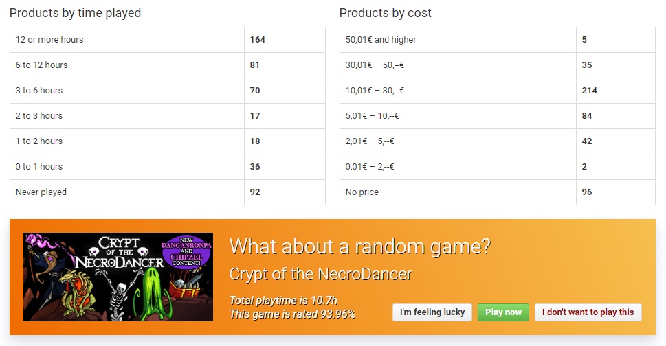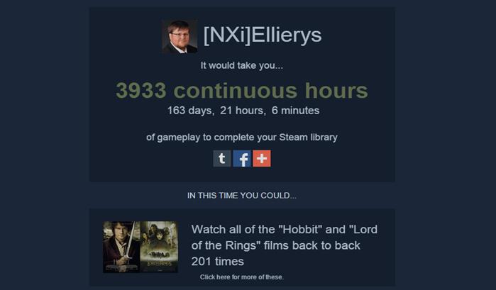 Surtout, si vous voulez rester motivé, n’allez jamais (ô grand jamais !) sur Steam Left. Un site qui calcul le temps moyen nécessaire pour finir tous vos jeux Steam.