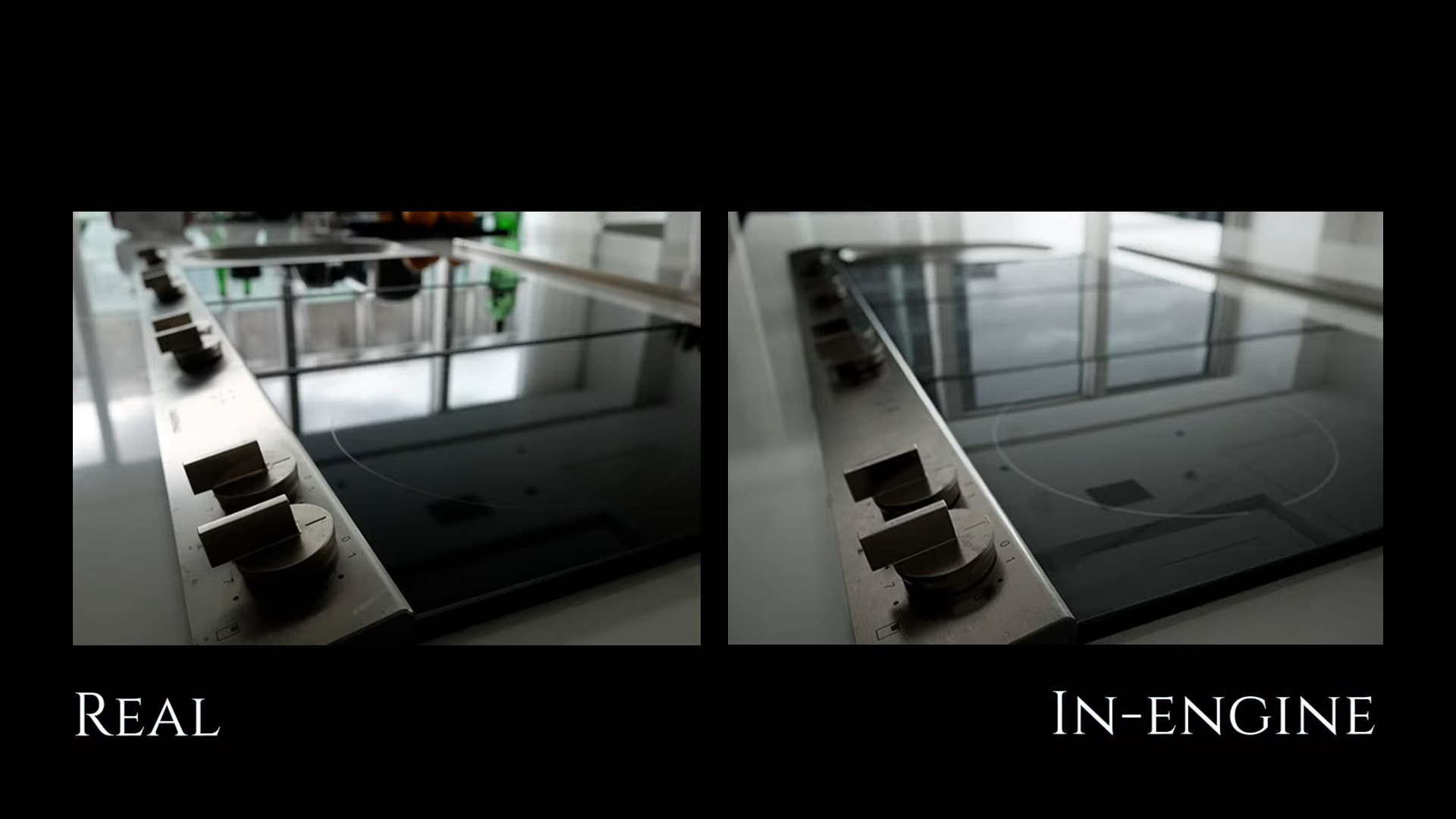 La vidéo n’est pas avare en comparaisons entre le rendu dans le moteur du jeu (non précisé) et de véritables photos de l’appartement en question. Un jeu rapide et idéal à faire en soirée : où est le jeu et où est la réalité.