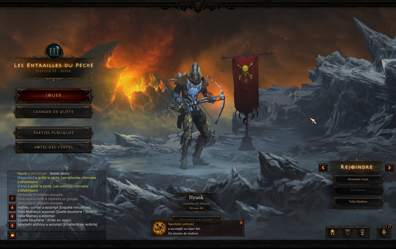 Comme annoncé il y a une semaine dans cette news, War Legend a mis le paquet (de déconnexions et de morts) pour accéder au niveau maximum de Diablo 3 en un minimum de temps. L’occasion pour Warlegend.net de tester sa capacité à stream sur des longues durées, en préparation des prochaines sorties. Denpxc (sorcière), Kappu (barbare), Hyunk (chasseur de démons) et Fera (Moine) ont donc terminé leur rush niveau 60 en 39 heures, avec des pauses, notamment pendant la maintenance de mercredi matin. Nos quatre compères sont à notre connaissance les premiers français à atteindre le niveau 60 en groupe de quatre joueurs, avec les réserves et les précautions habituelles inhérentes à ce genre d’annonces.