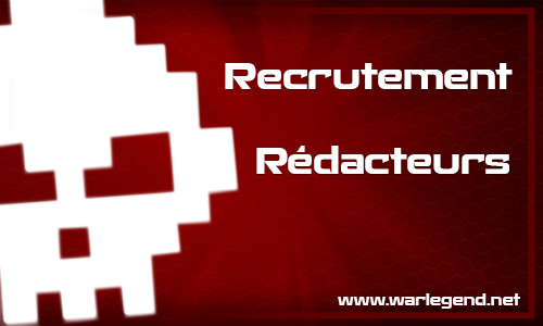 Beaucoup de joueurs aiment se renseigner sur l’actualité des jeux vidéo mais peu d’entre eux osent passer de l’autre coté de la barrière. War Legend vous offre aujourd’hui une occasion UNIQUE de vous investir dans un projet solide, ambitieux et réaliste. Notre structure, qui est aussi VOTRE structure, a besoin de votre talent pour la diffusion et la promotion de l’actualité des jeux vidéo.