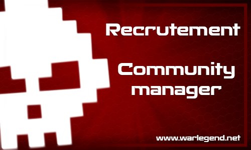 Beaucoup de joueurs veulent participer à un projet dans le domaine du jeu vidéo mais peu d’entre eux osent passer de l’autre coté de la barrière. War Legend vous offre aujourd’hui une occasion UNIQUE de vous investir dans un projet solide, ambitieux et réaliste. Notre structure, qui est aussi VOTRE structure, a besoin de Community Managers.