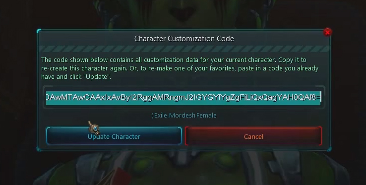 WildStar offre la possibilité de conserver l’apparence de votre personnage. Après avoir terminé la création de votre personnage, un bouton vous sera disponible et vous permettra de générer un code de sauvegarde de la personnalisation de votre personnage.