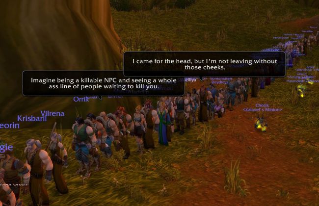 Prenez donc votre mal en patience. Au fur et à mesure que le temps passera, vous finirez par pexer tranquille, le temps que les joueurs quittent les zones de départ et se répartissent aux quatre coins d’Azeroth. Souvenez-vous que tout le monde connaît le jeu par cœur et que chaque personnage commence au niveau 1. Ce qui se passe était malheureusement prévisible, mais surtout inévitable.