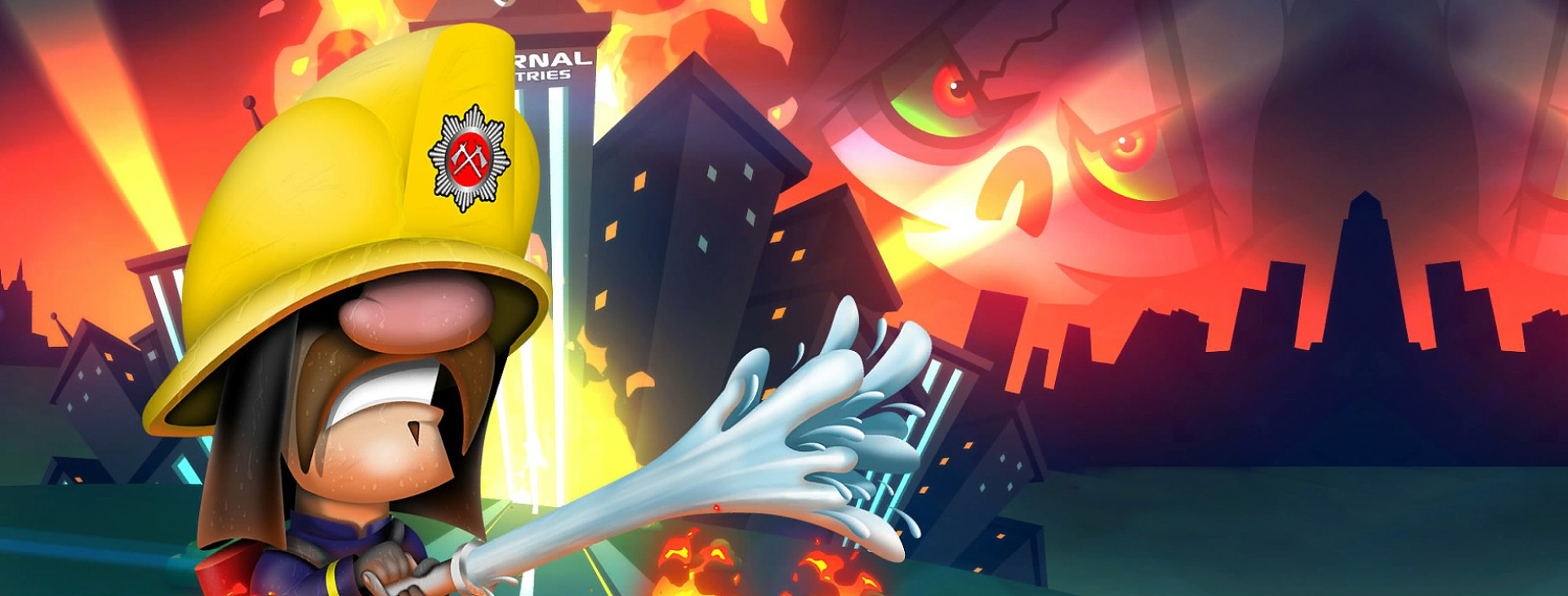 Set up as a twin-stick shooter with randomized levels and a persistent upgrade system, Flame Over doesn’t seem all that challenging. I mean, just look at it. It presents itself as a fun, lighthearted romp where you put out fires, save people and rescue cats. You know, the normal shenanigans that firefighters experience on a daily basis.